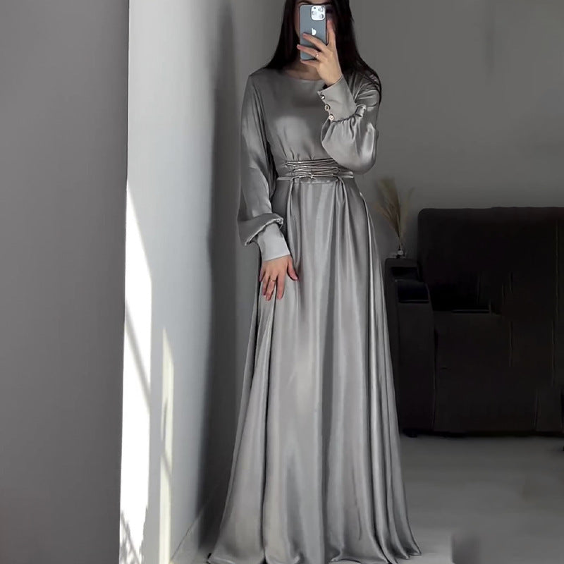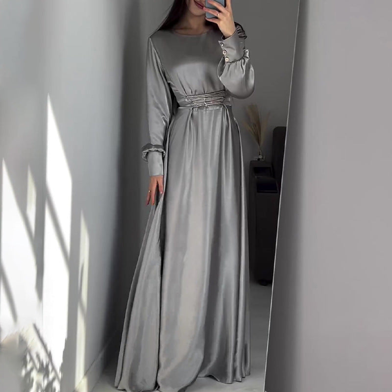 Women's Autumn Round Neckline Thigh Dress High-Rise Strap Dress Dress Dress Women