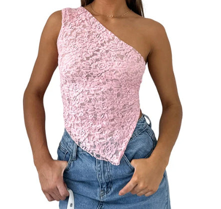Women's Clothing 2024 New Solid Color Lud Asymmetric Collar Top DJPT