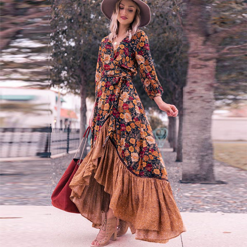 Women's New Dress Summer Casual Long-Sleeved Print Retro Dress DJPT