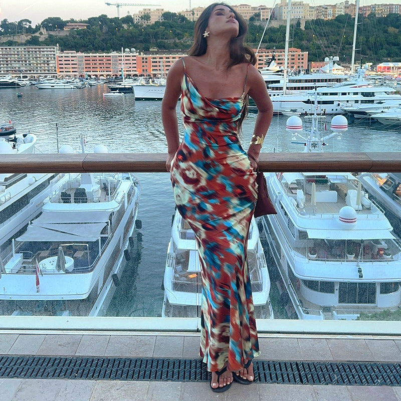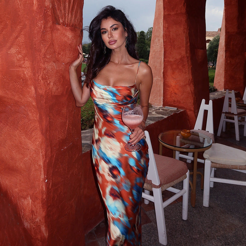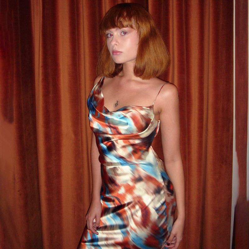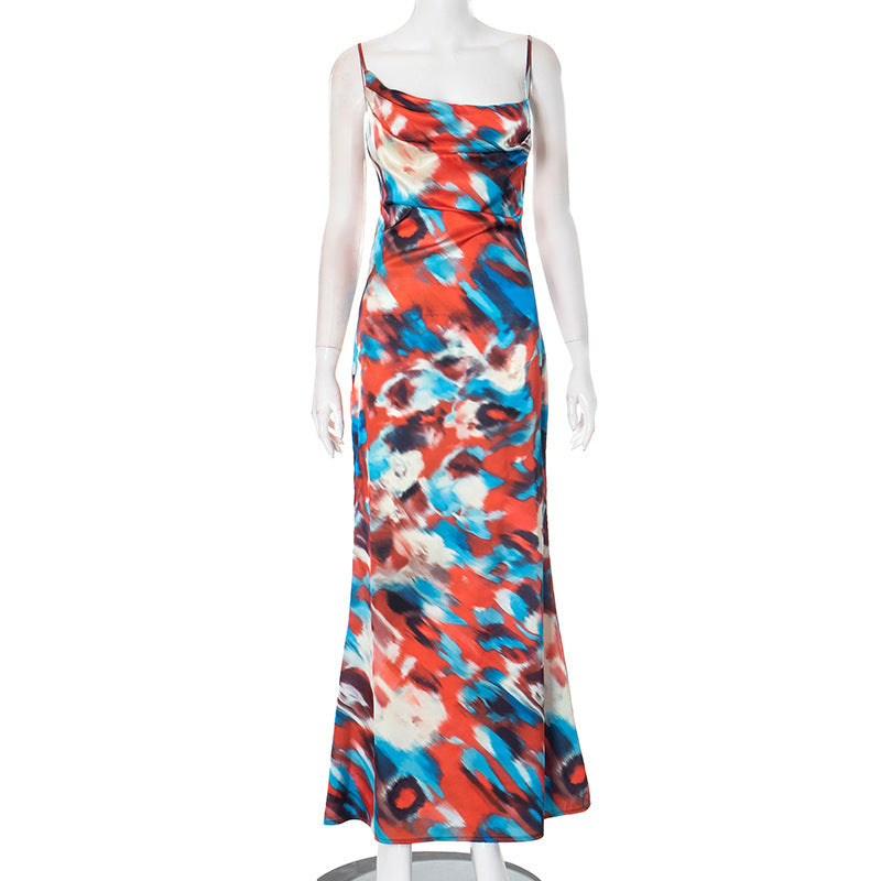 Women's Sling Color Printed Iron Buckle Detonation Folding Skirt DJPT