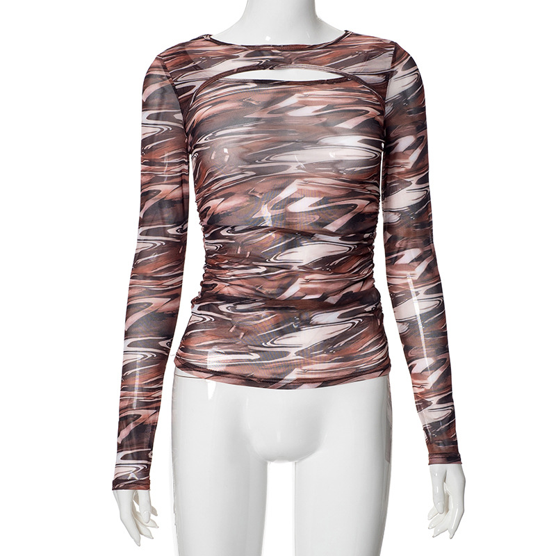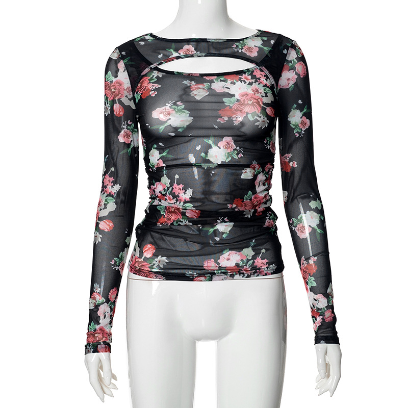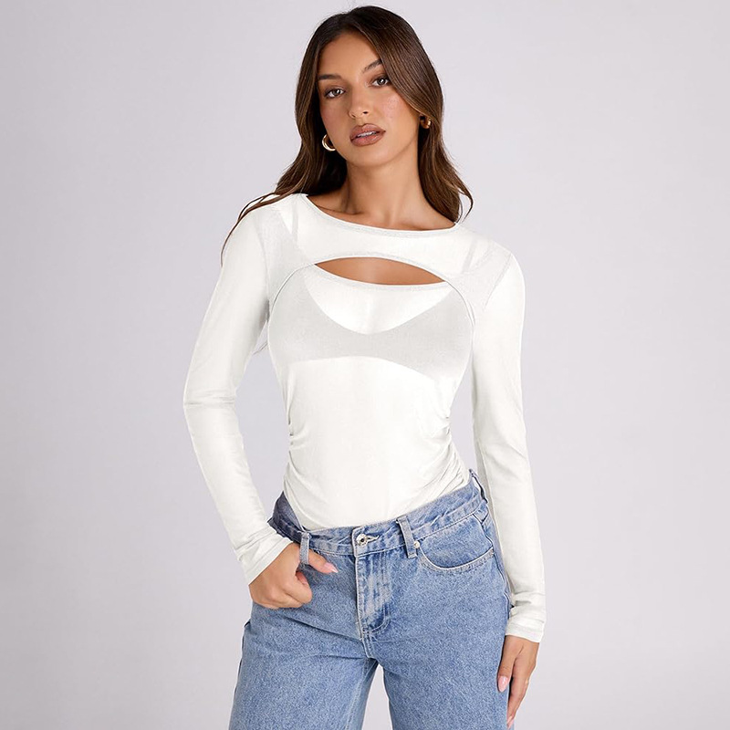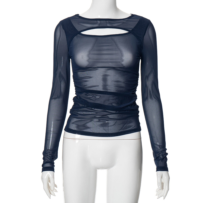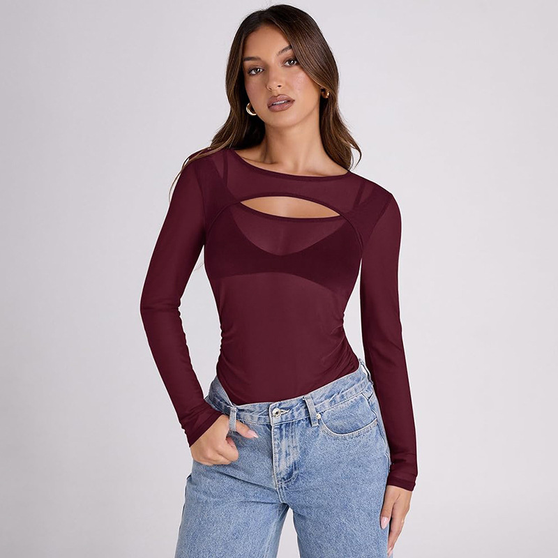 Women's Summer 2024 New Solid Color Long Sleeve Bottom Net Slamm Slamm An Empty Top DJPT