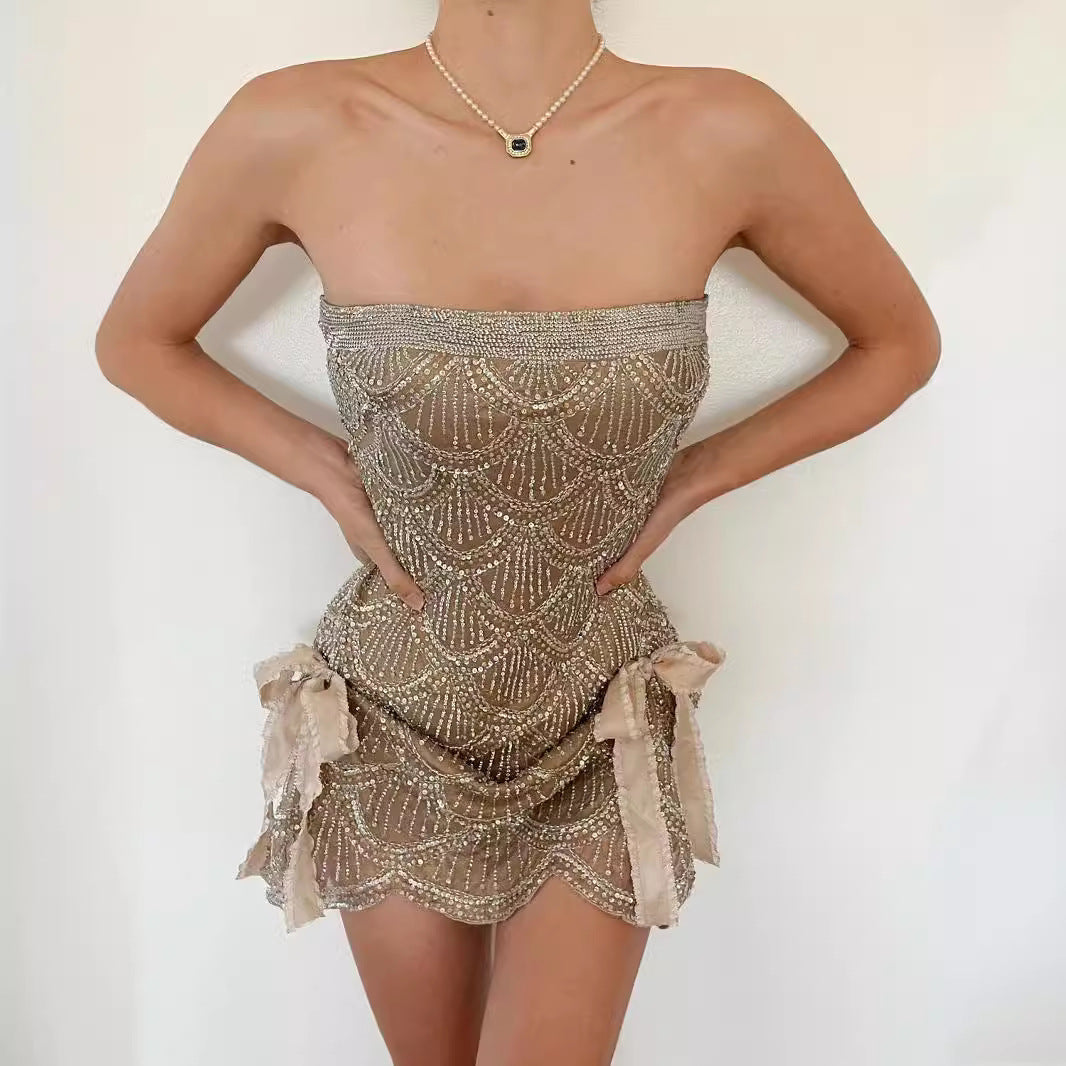And Summer 2025 New Sexy Hottie Smear Heavy-Bright Squint Small Dress High-End Birthday Party Dress