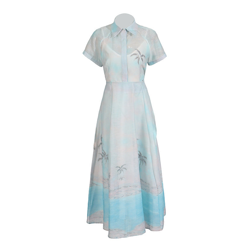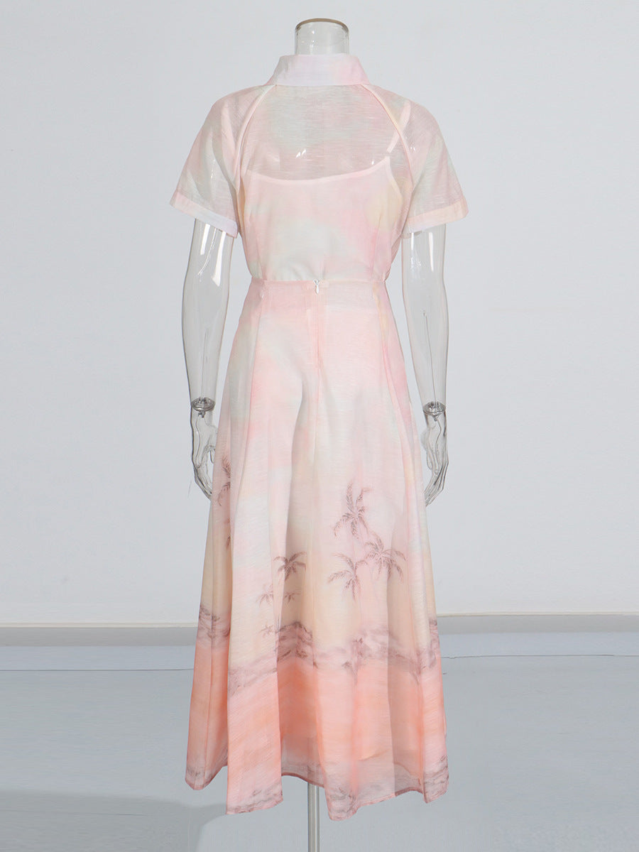 2025 Summer New V-Neck Print Short-Sleeved Shirt + High-Rise Half-Dress Suit Woman