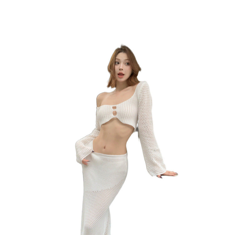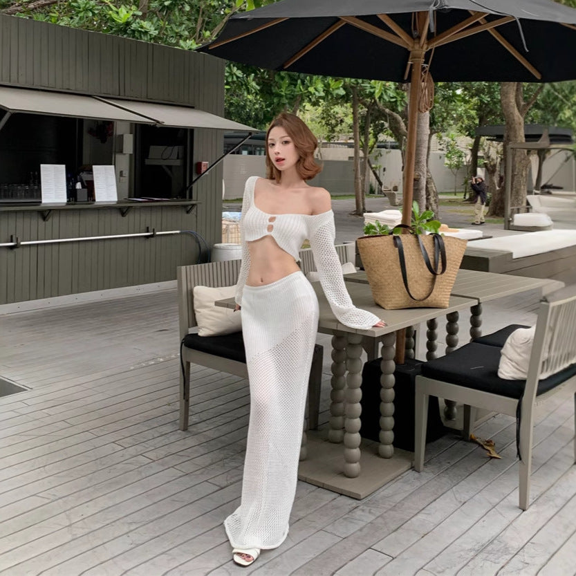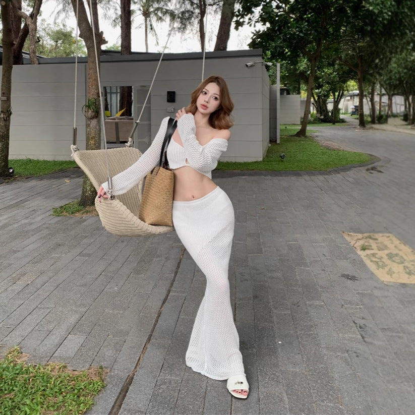 Girls Knitted Set Girl Short Tice T-Shirt Sexy Bagbage Beach Vacation Half-Spicy Dress