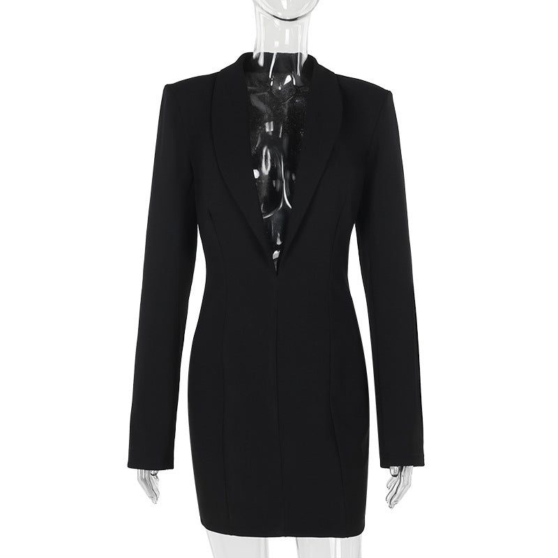 Sexy Deep V-Neck Long Sleeve Bag Suit Dress Woman 2025 New Spice Girl Short Dress DJPT