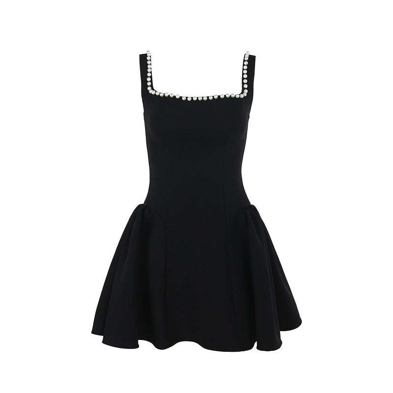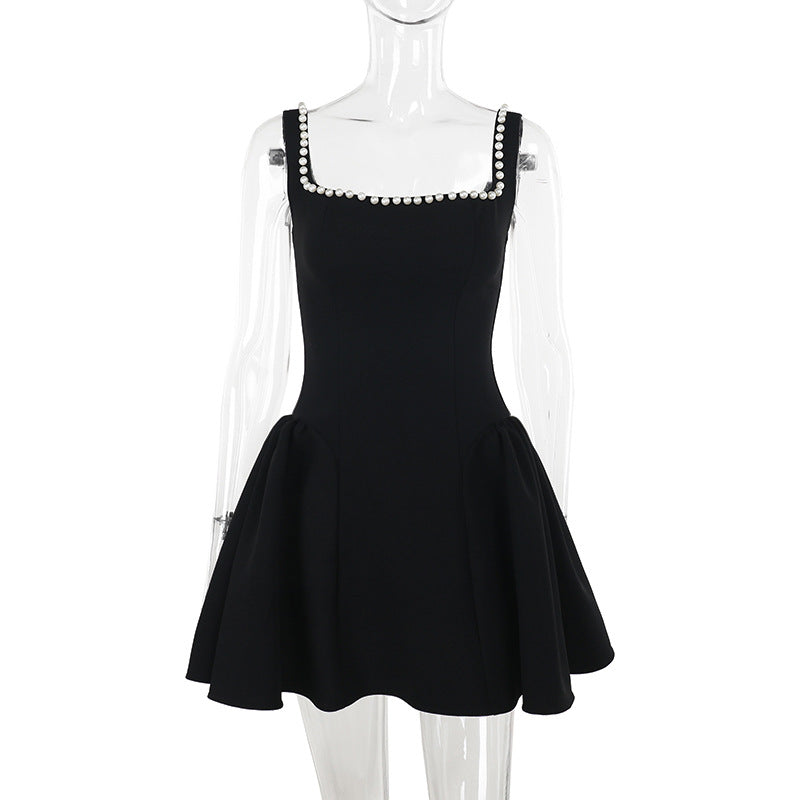 Spring 2025 New Short Skirt Famous Style Temperament Sexy Body Pearl Square Sling A Skirt DJPT