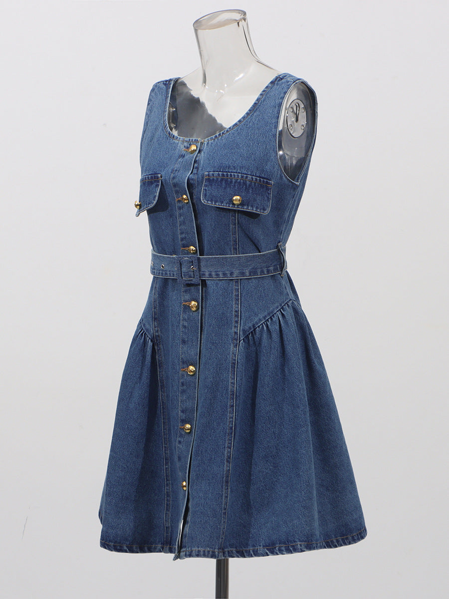 Trendy Cowboy Sling Skirt 2025 New Women's Summer Single Buckle Door Belt Belt Belt Belt Short Skirt Dress Dress Woman