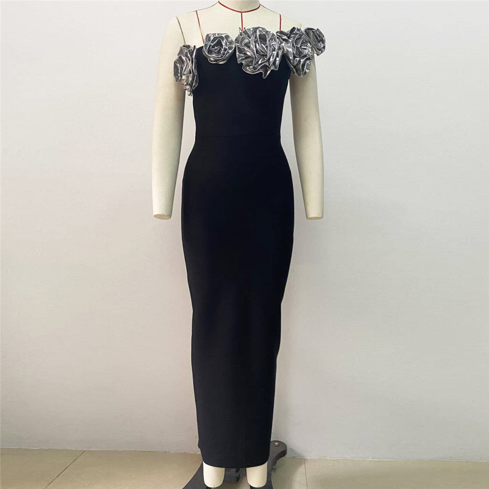 2024 Design-Sensitive Three-Dimensional Golden Flower Sleeveless Banded Dress Party Dinner Dress Dress