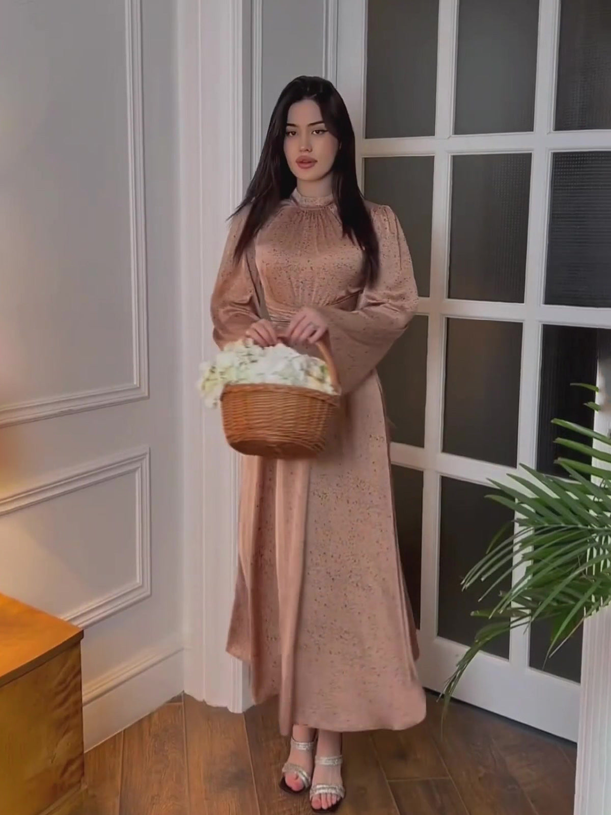 2024 Gentle Wind With Ribbon Print Lady Style Dress Dress