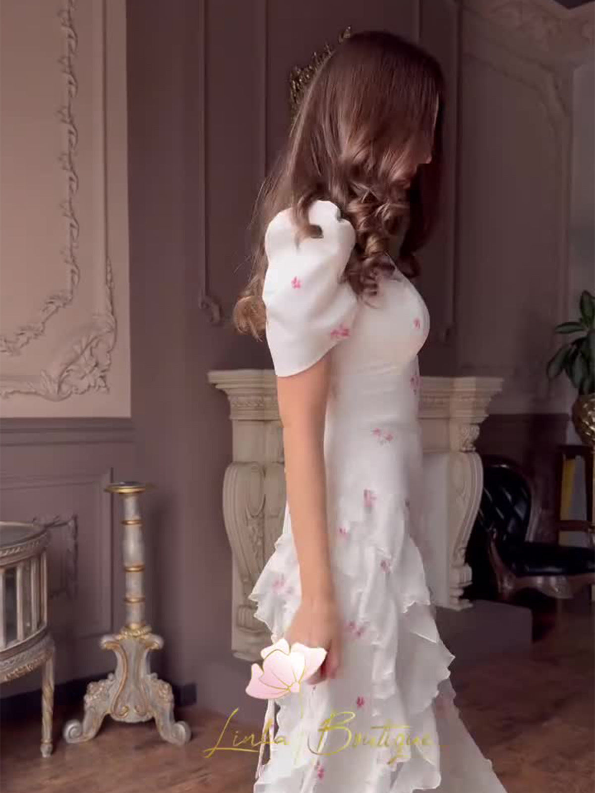 2025 New Sweet Style Temperament Short-Sleeved Silk Elegant Fashion Dress Woman