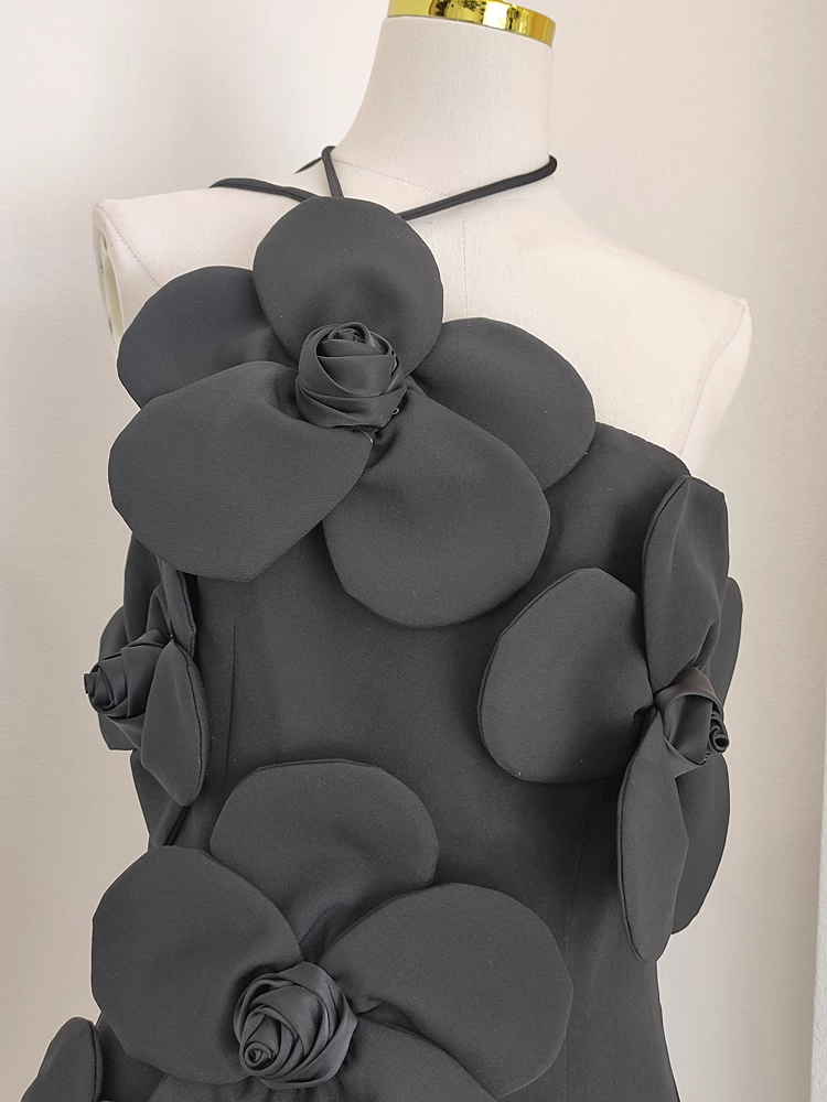 A line Halter Black Flowers Vacation Dress Short Birthday Dresses SD178