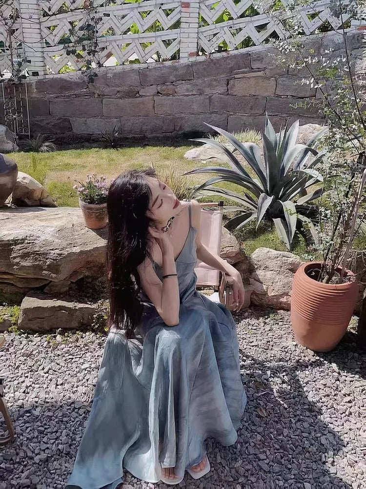 A line Spaghetti Straps Blue Long Prom Dresses Birthday Dress For Women SD243