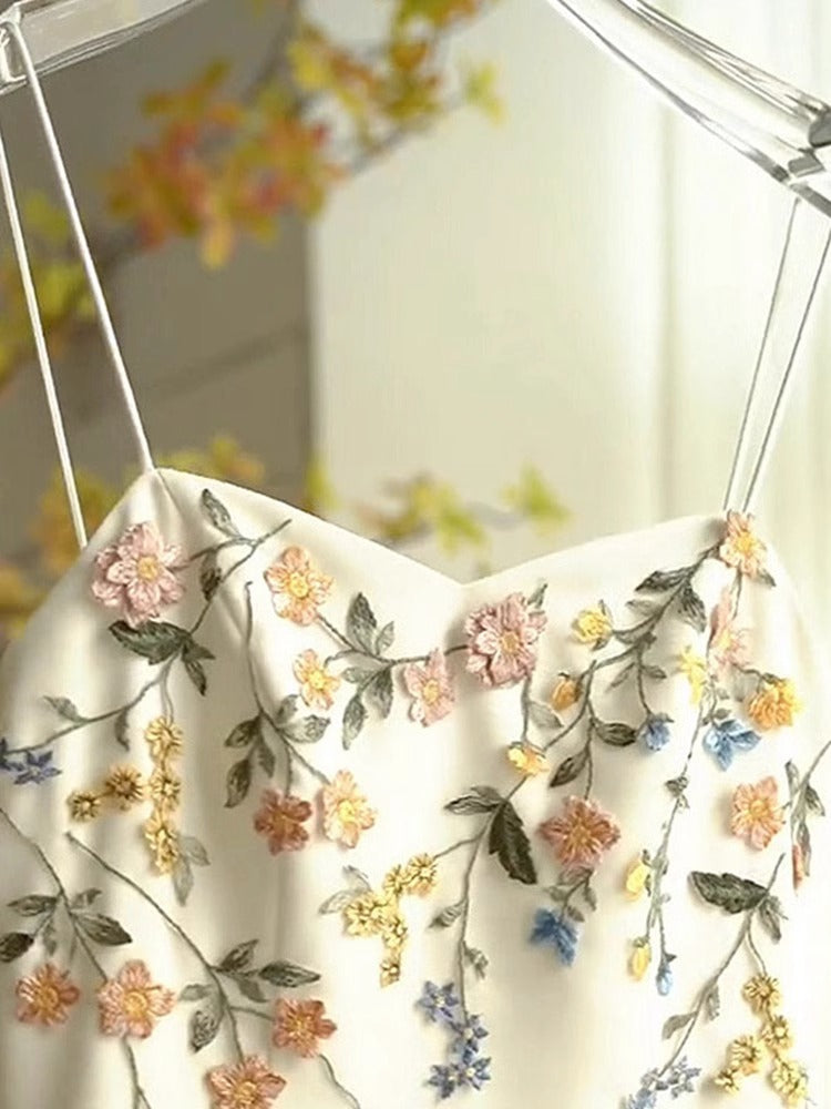 A line Spaghetti Straps Ivory Floral Satin Prom Dresses Birthday Outfits Evening Gown SD1136