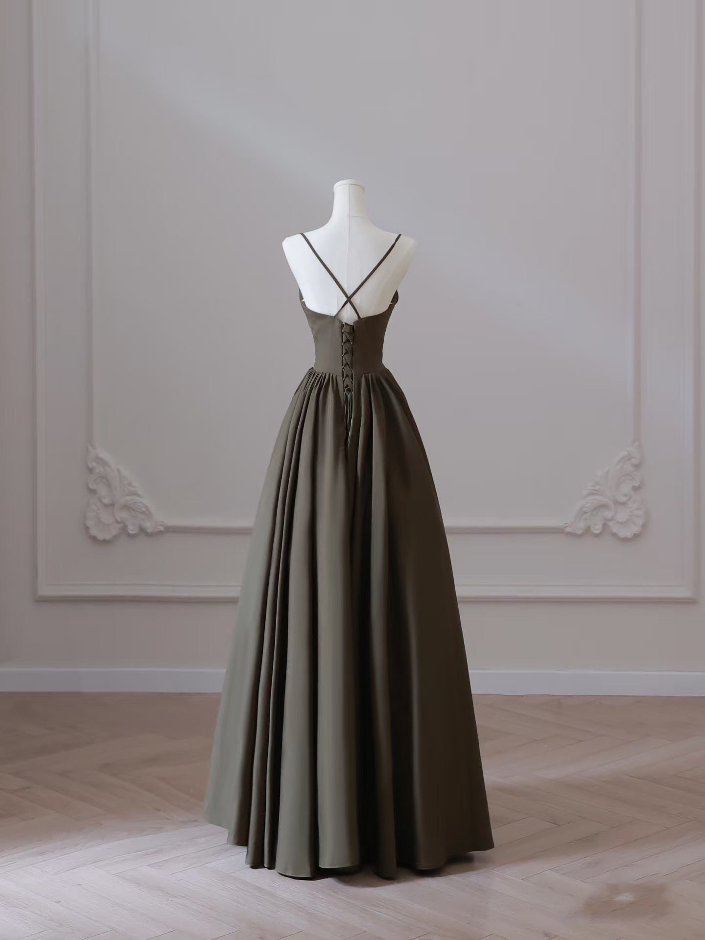 A Line Spaghetti Straps Satin Long Prom Dresses Evening Gowns S3868
