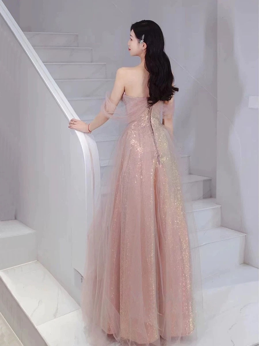 A Line Sweetheart Pink Sequin Long Length Evening Dress Prom Dresses SD2776