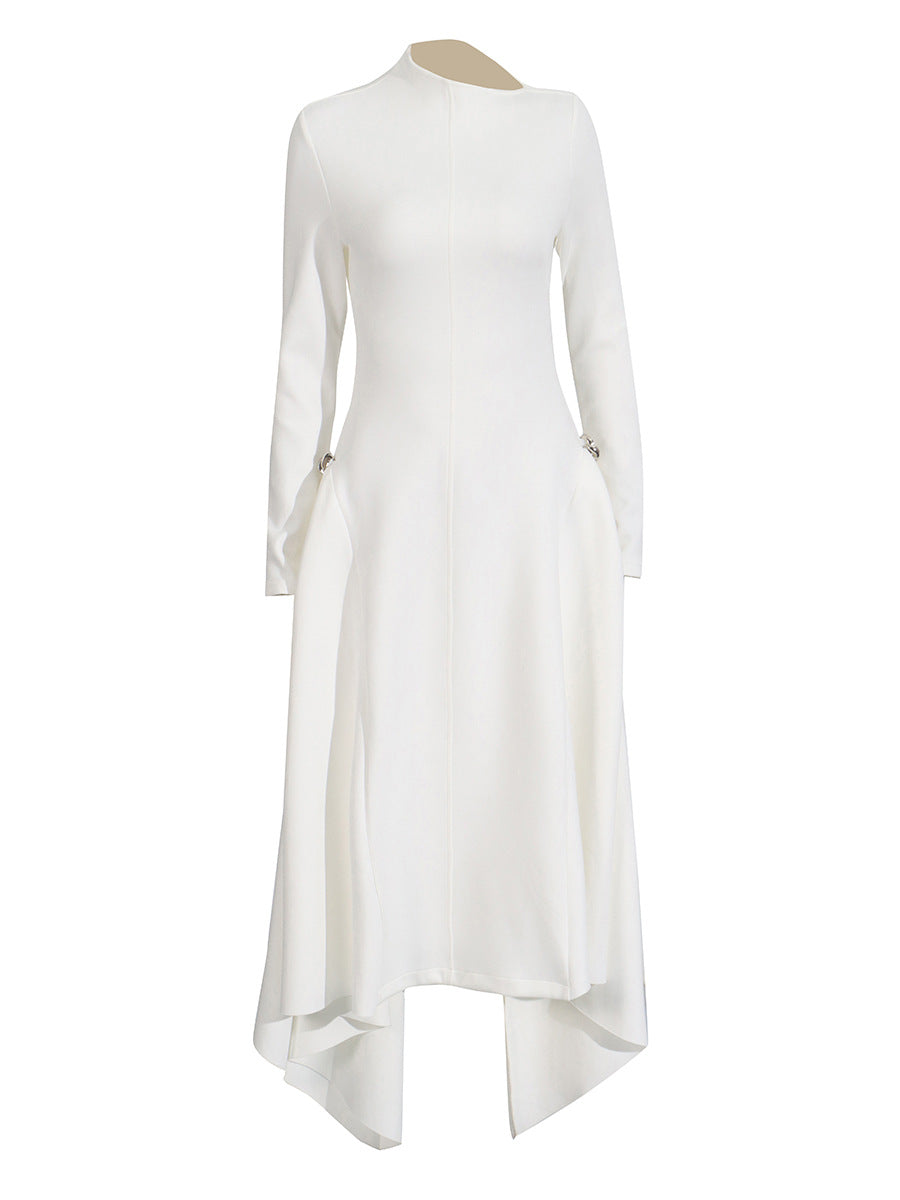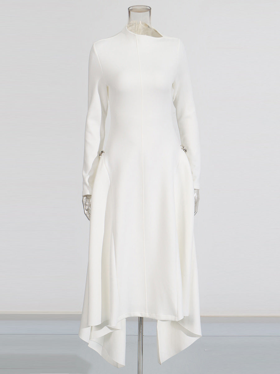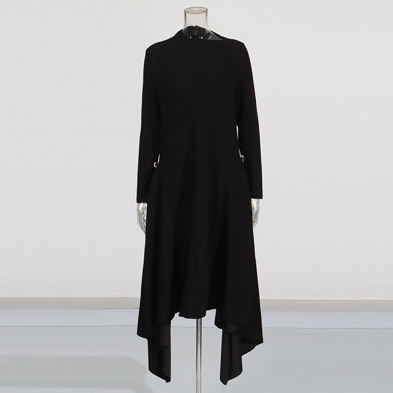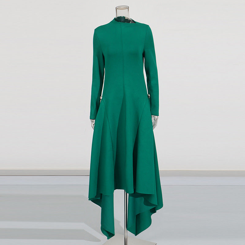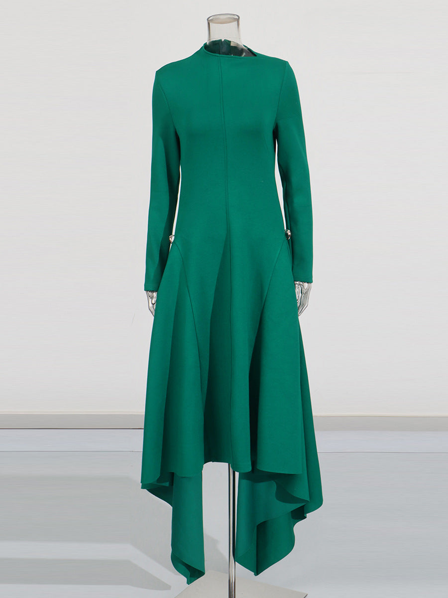 Asian Temperament Elegant Wind Collar Long Sleeve Irregular Dress 2025 New Solid Broad Ass Dress Women Summer