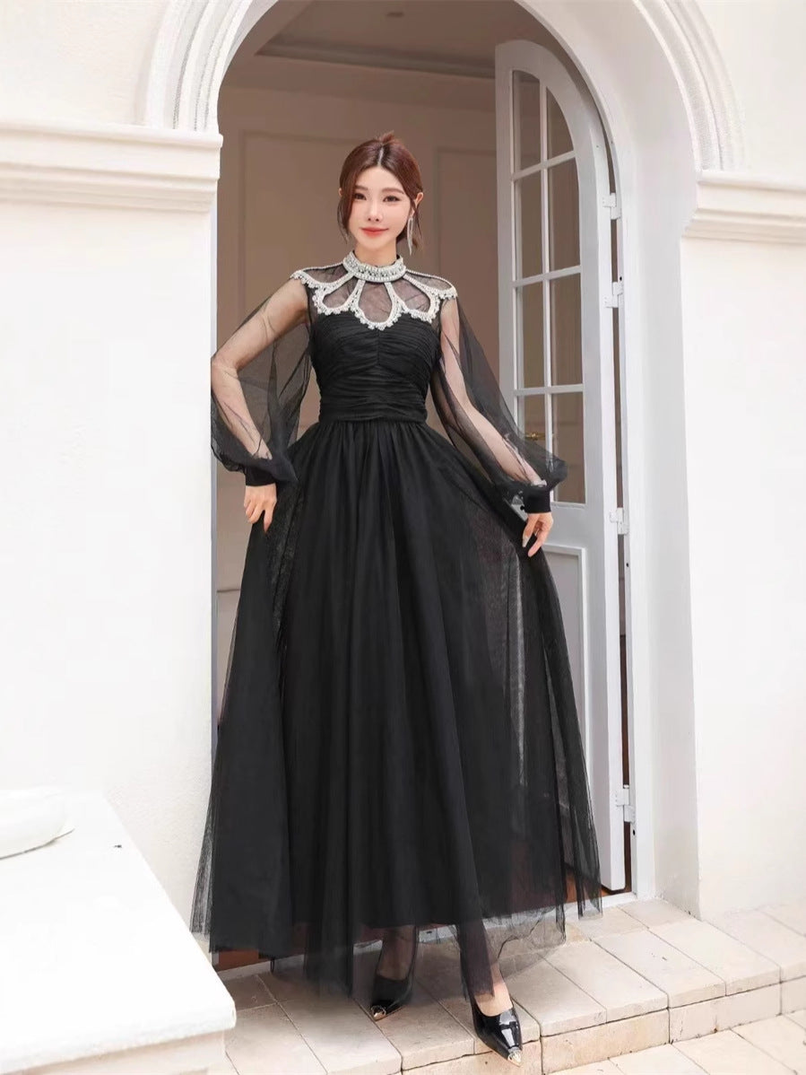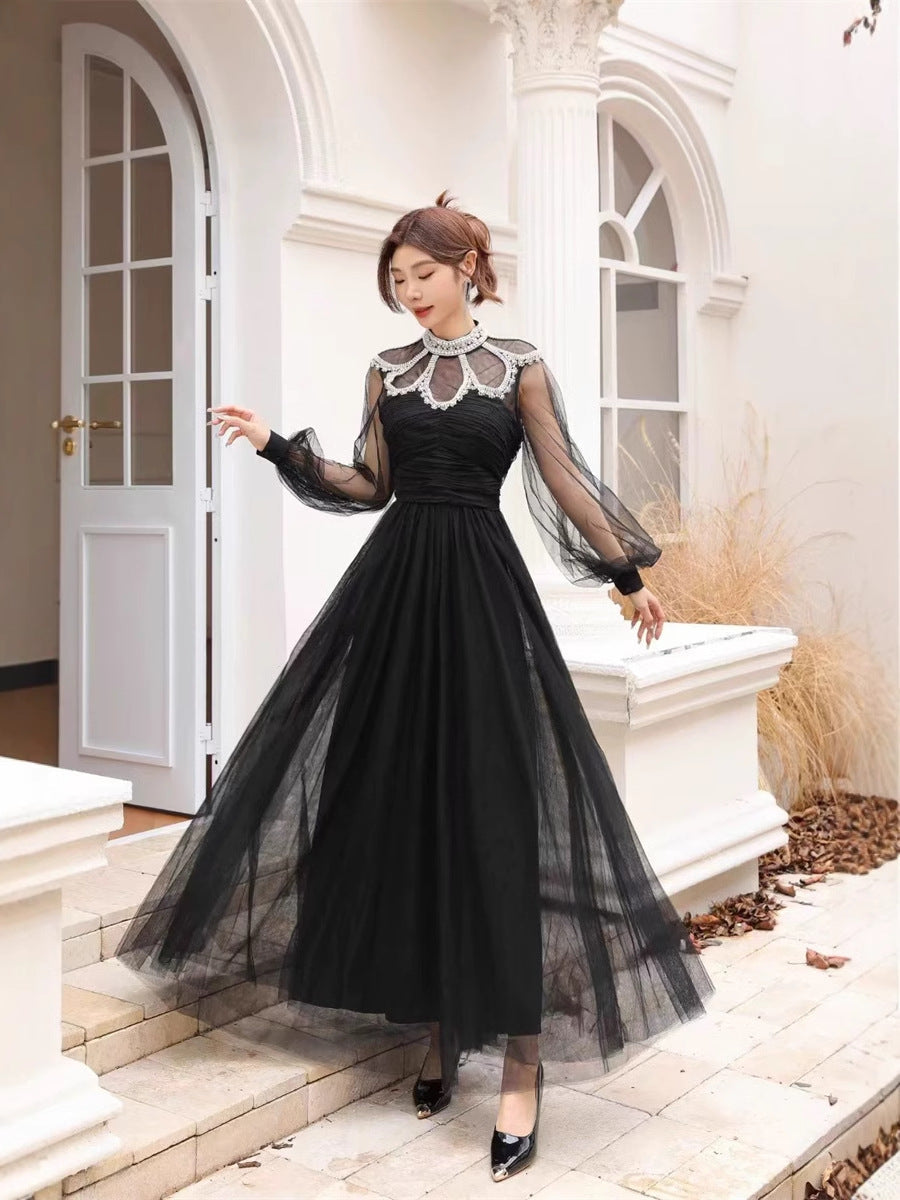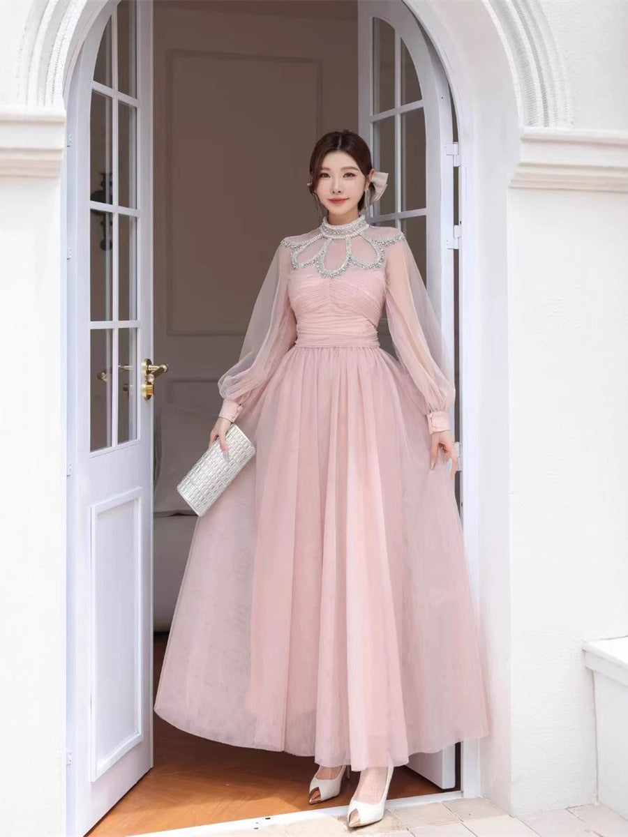 Autumn And Winter Heavy Industry Famous Diamond Decoration Net Fairy Atmosphere Dress Long Dress Host Banquet Dress