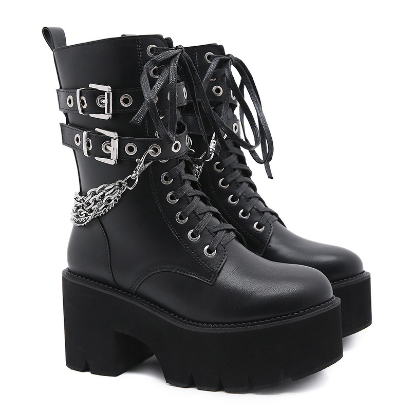 Autumn And Winter New Thick Side Zipper Thick Background Fashion Rivet Belt Buckle Girl Chain Martin Boots High Quality Shoes