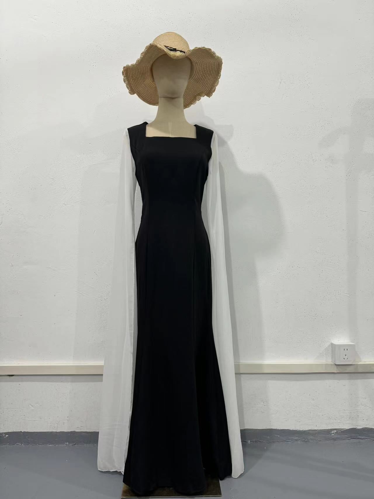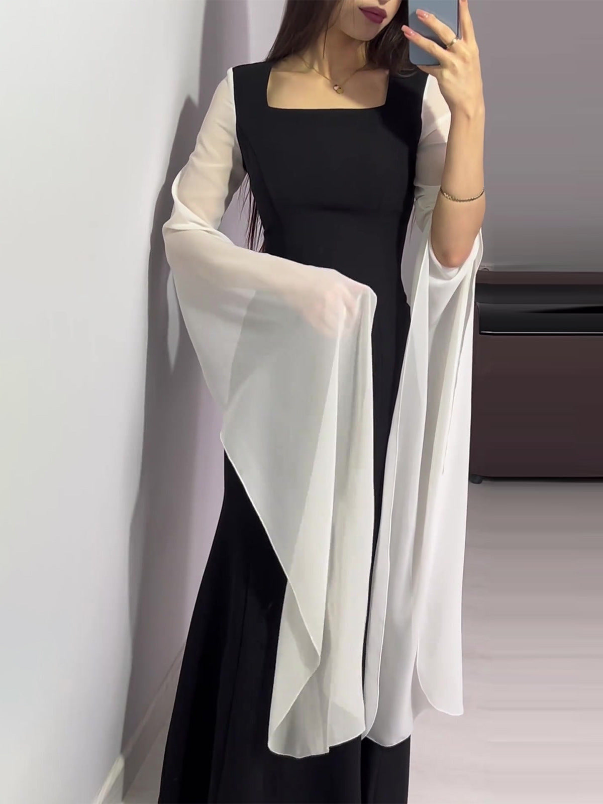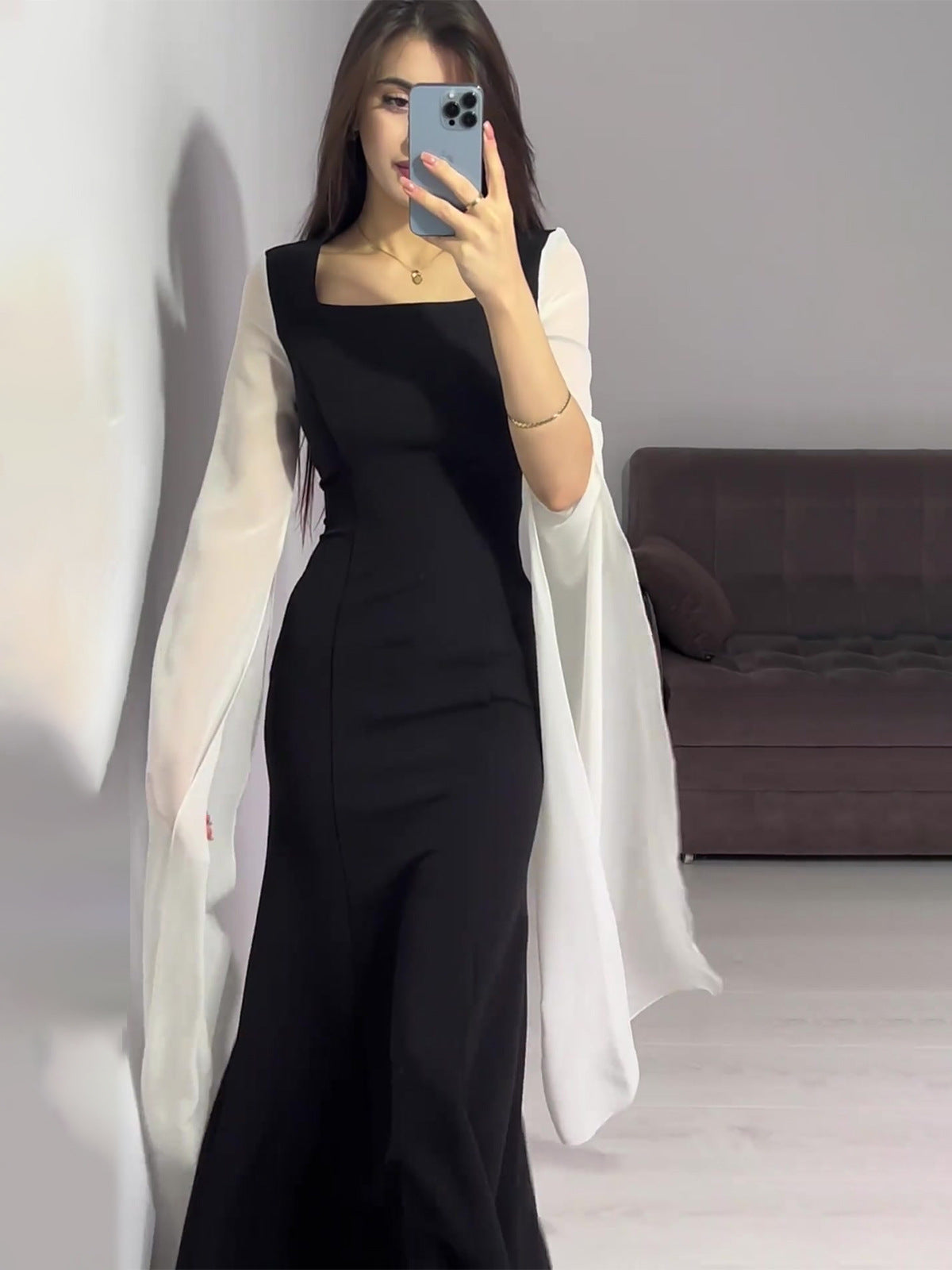 Autumn Bat Sleeves To Close The Waist Of The Famous Hepburn Wind Black And White Stitching Dress Woman