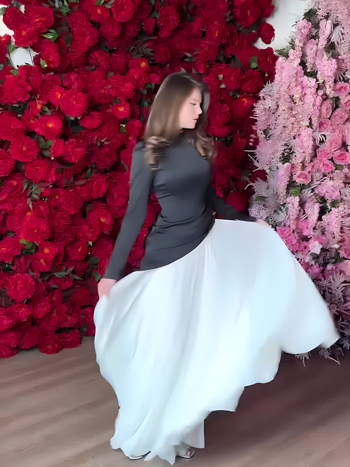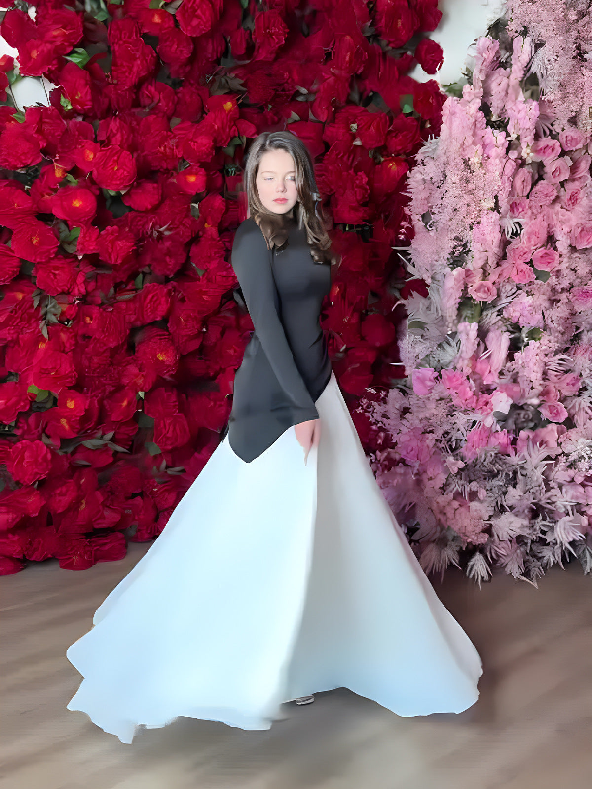 Autumn New Black And White Splicing Temperament Folds To The Waist Show Thin Swing Dress Women