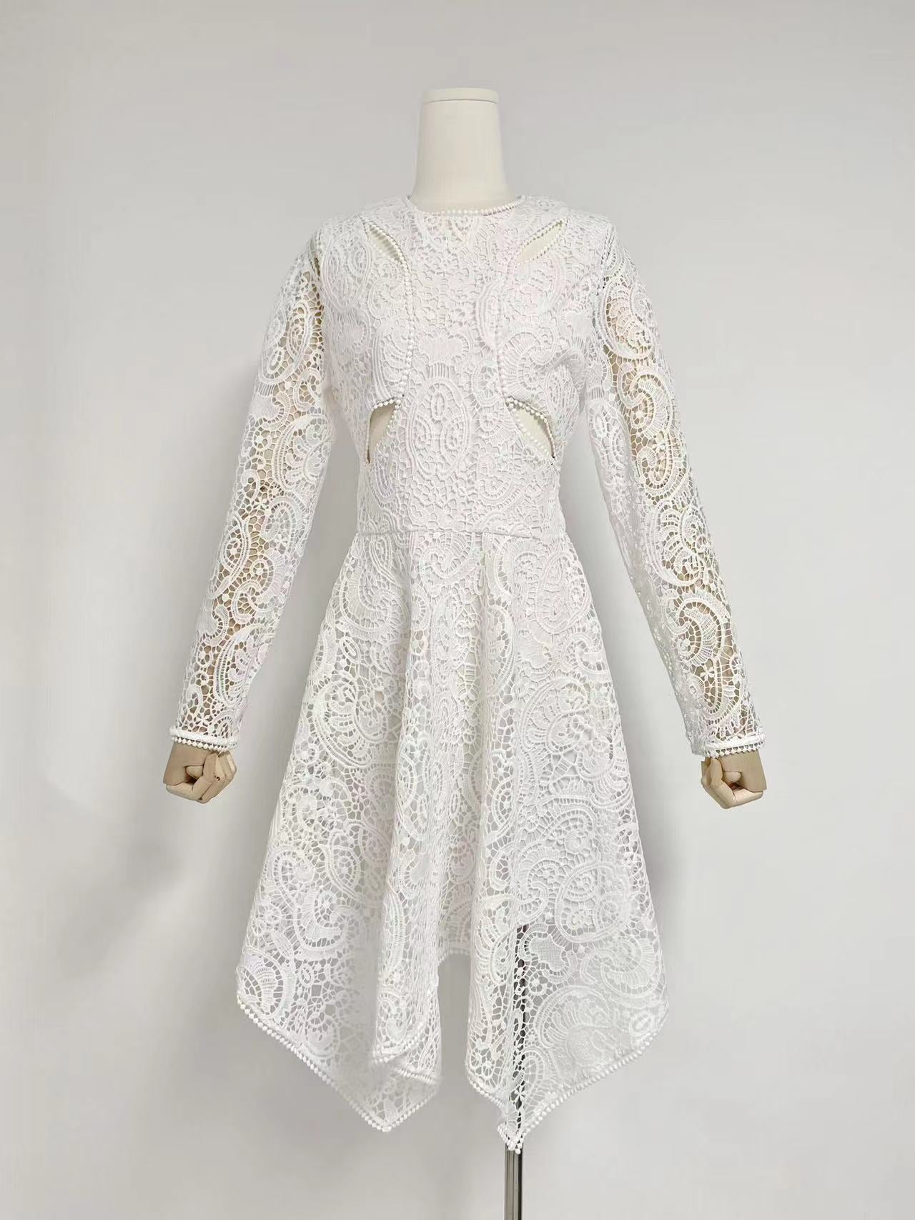 Autumn New Round-Neck Long-Sleeved Irregular Dress Type Hole Design Hollow Waist Short Dress Woman