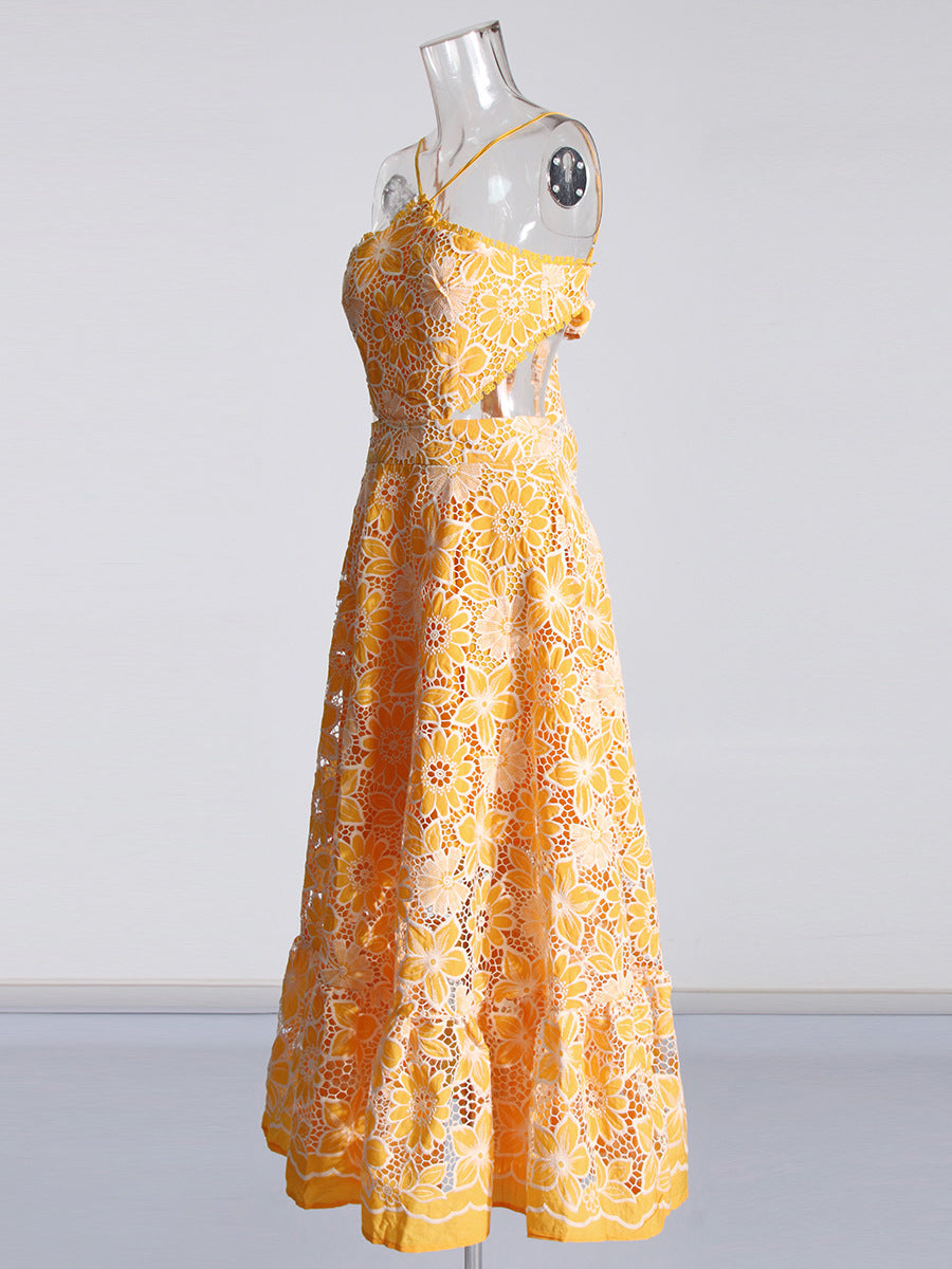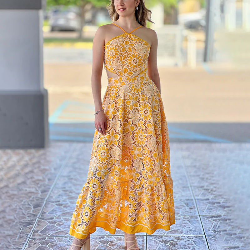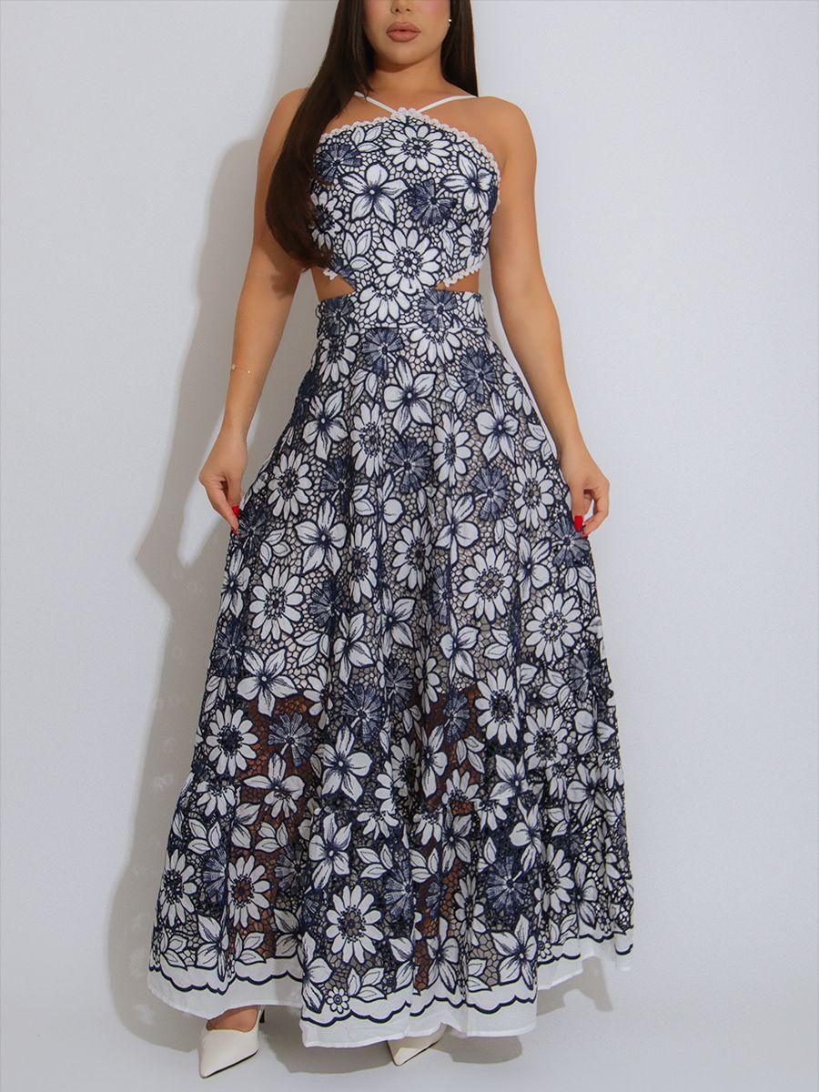 Babes 2025 New High-End Feeling Hanging Neck Sling Belt Hollow Print Dress In The Female