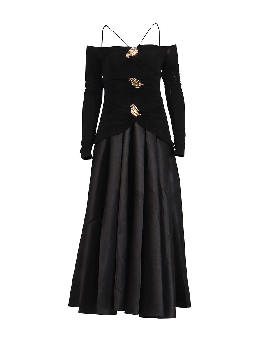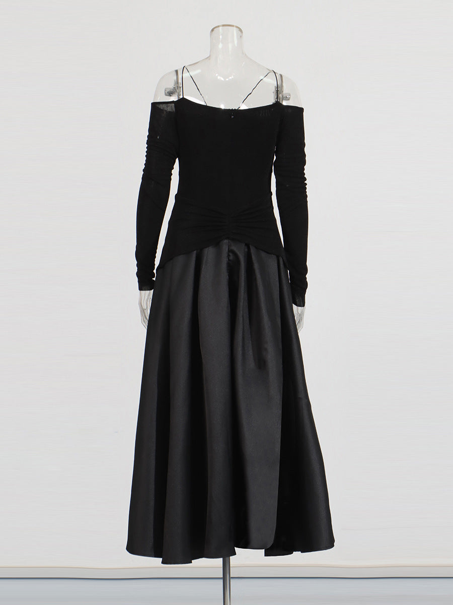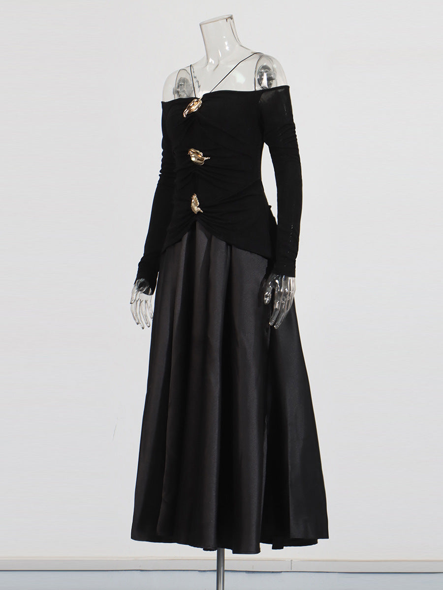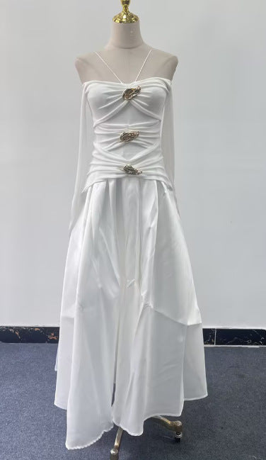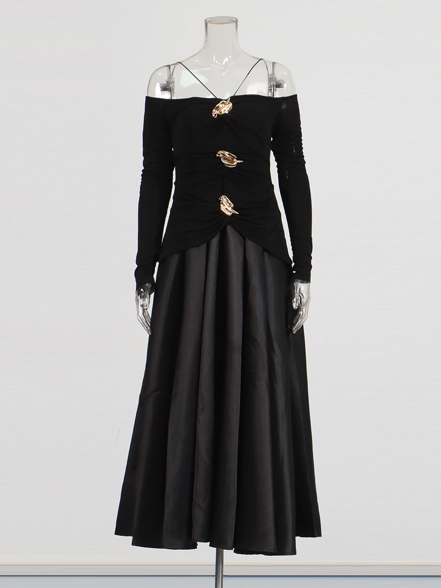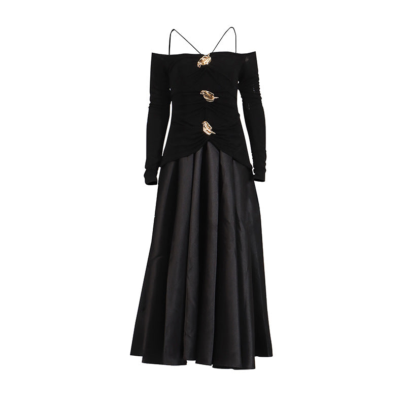 Babes Sling Skirt 2025 Summer New Out-Shoulder Long-Sleeved Pin Shoulder Strap Corset Dress Dress Woman