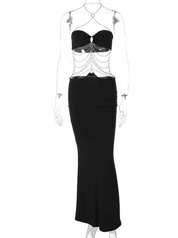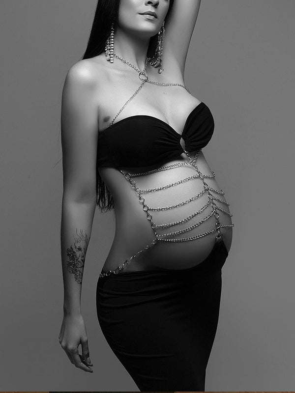 Black Cut Out Chain Halter Neck Bodycon Photoshoot Elegant Maternity Maxi Dress Maternity