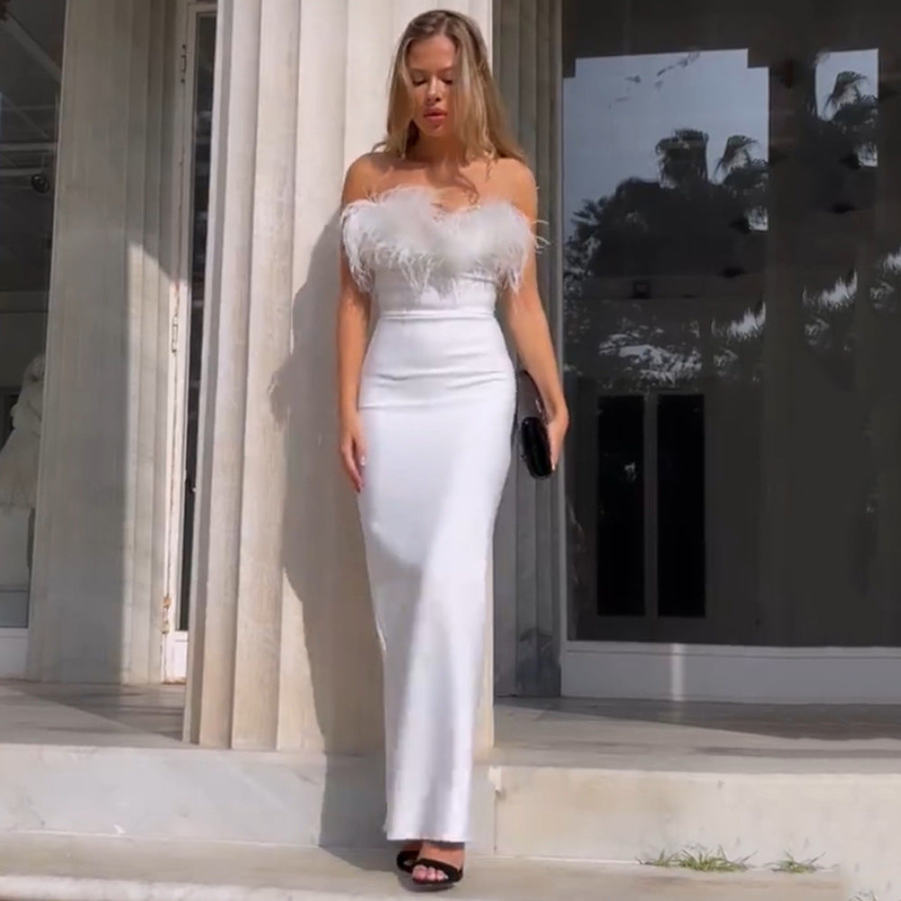 Braided Tat-Carnated Feathers Elegant Tight-Bossed Party Party Dress Dress
