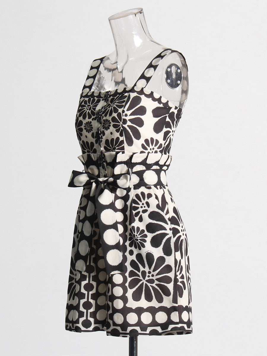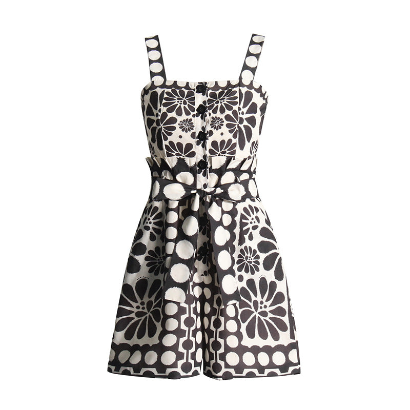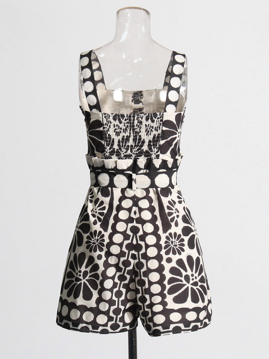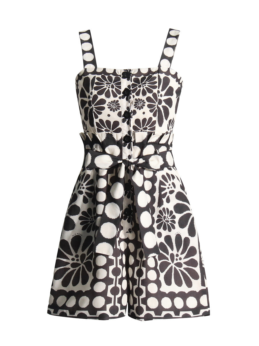 Casual Wind 2025 New Printed Sleeveless Button Tie With Short Broad Leg Jumpsuit Woman
