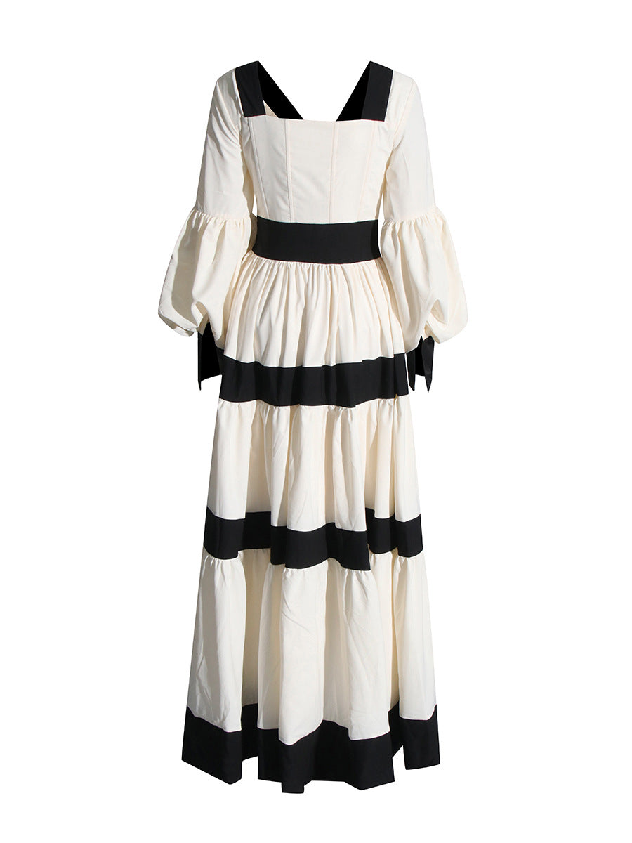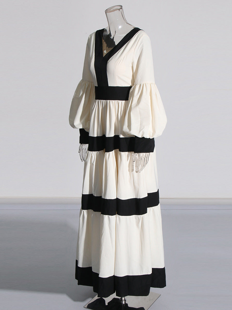 Court Dress Dress 2025 Summer New V-Neck Long Sleeves Bump Long Drag Dress