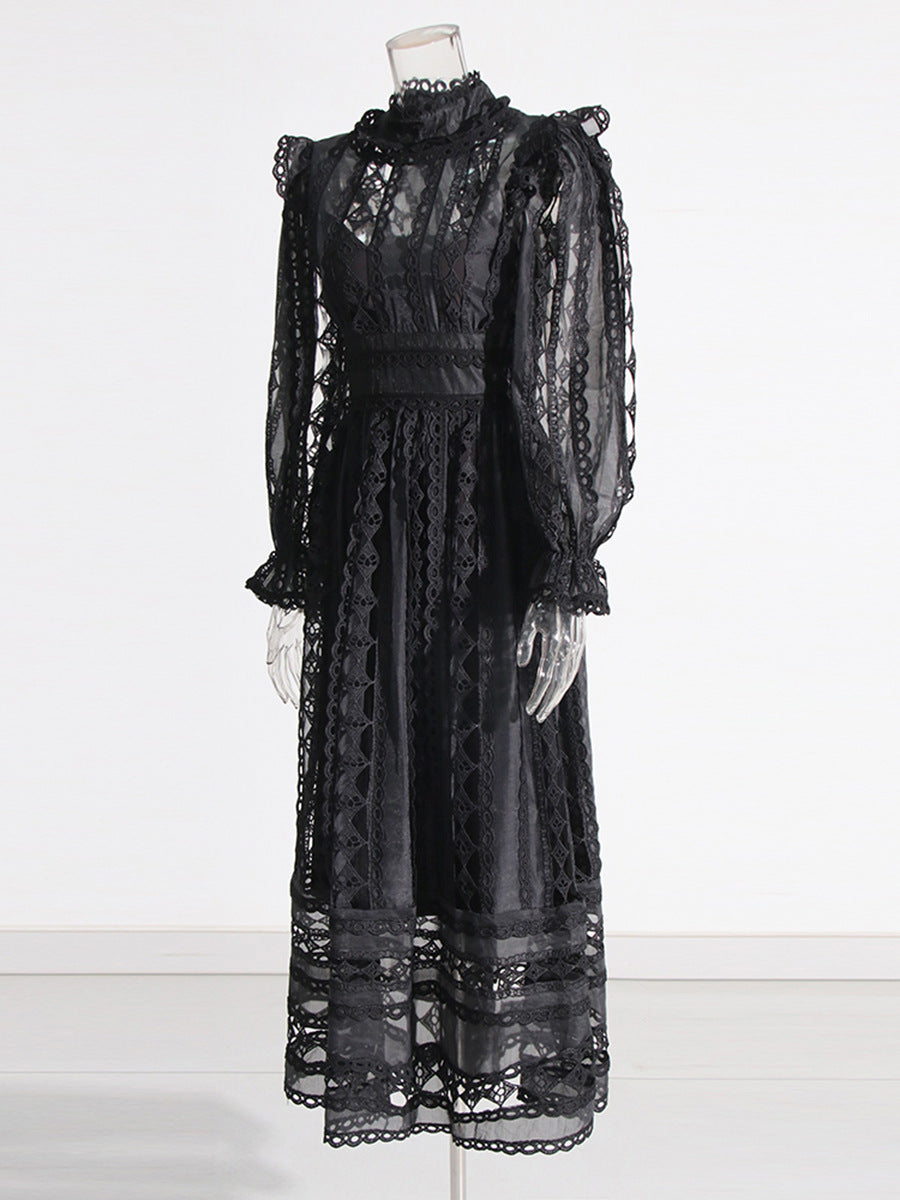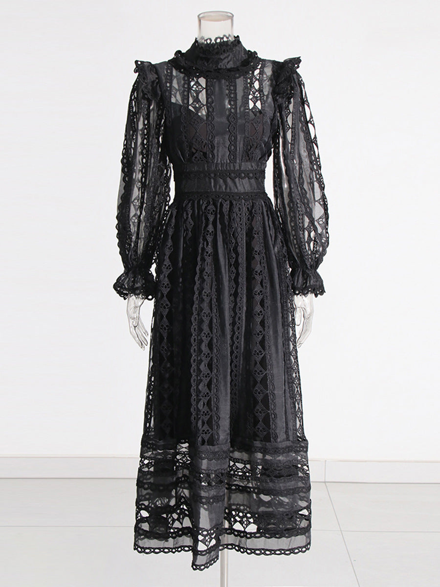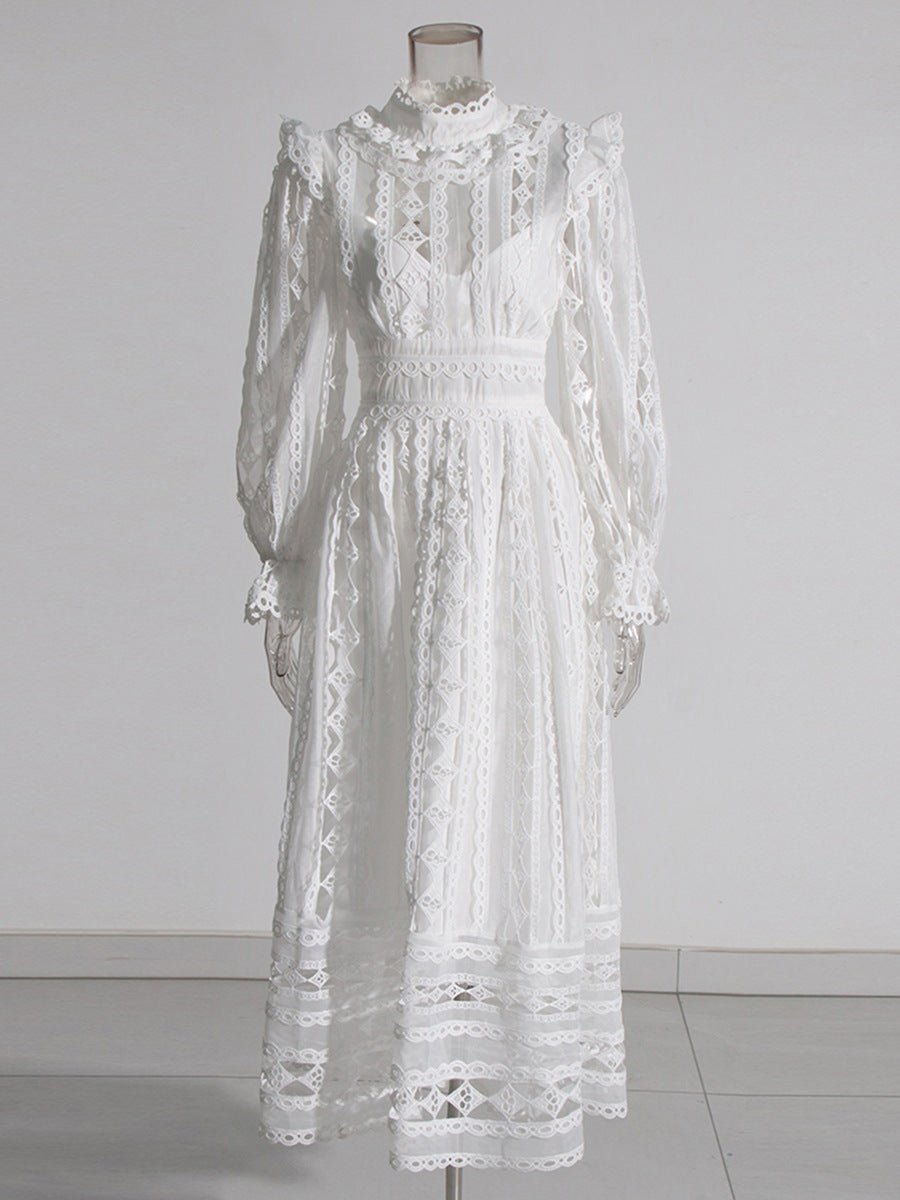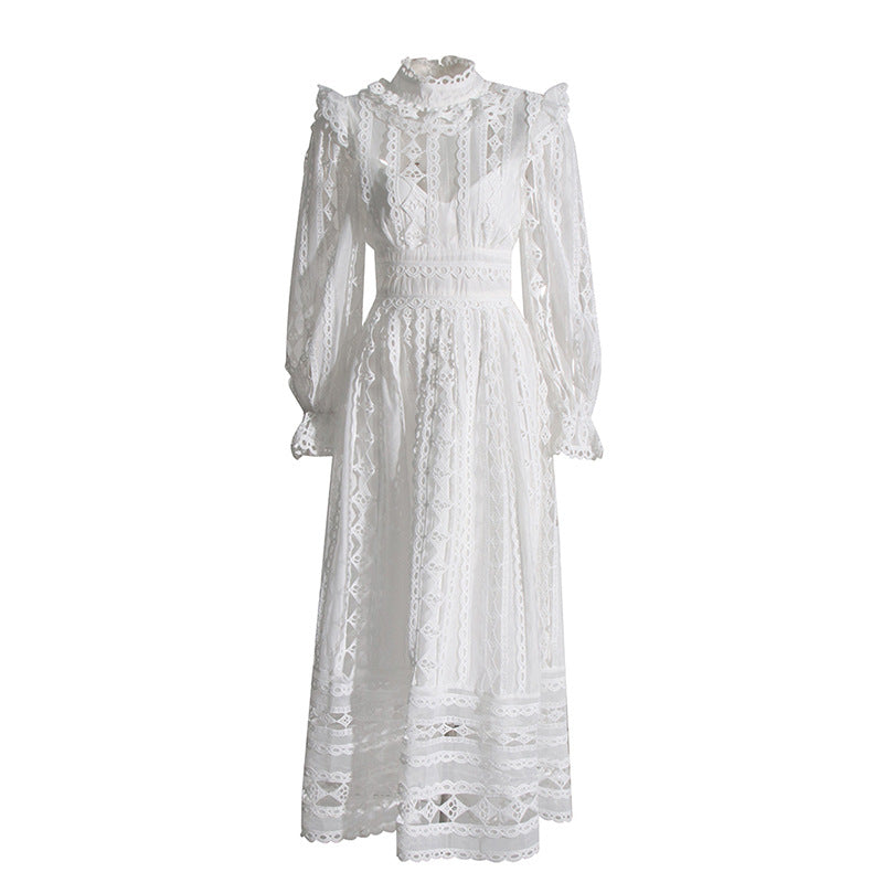 Court Dress Women's Dress Spring 2025 New Collar Lace Long Sleeves Embroidered High-Waisted Long Dress