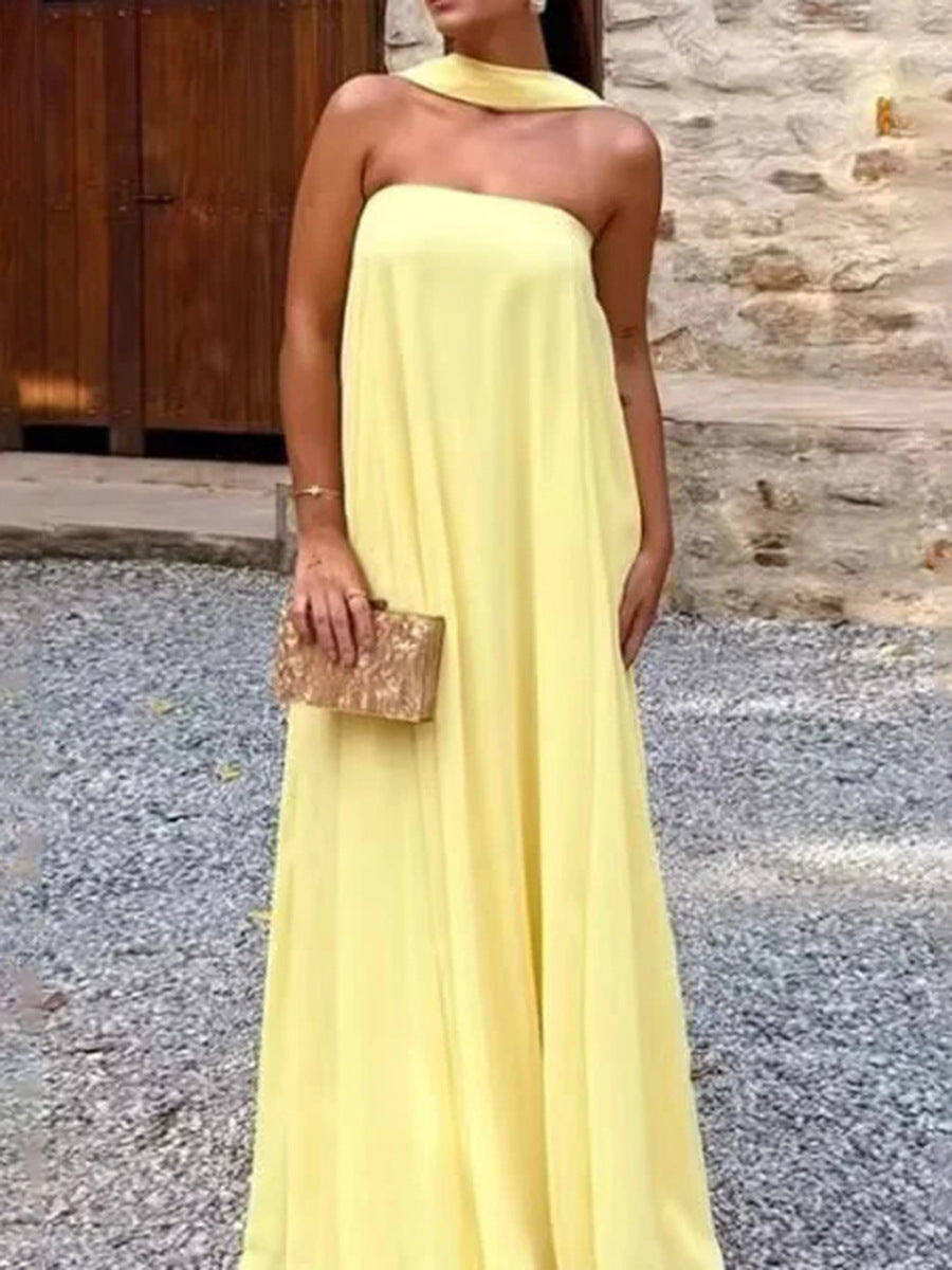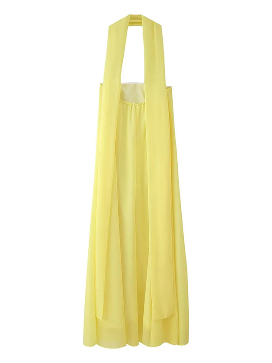 Court Style Chest Ribbon Dress 2025 New Women's Summer Loose Waist Showing Long Skinny Dress Women