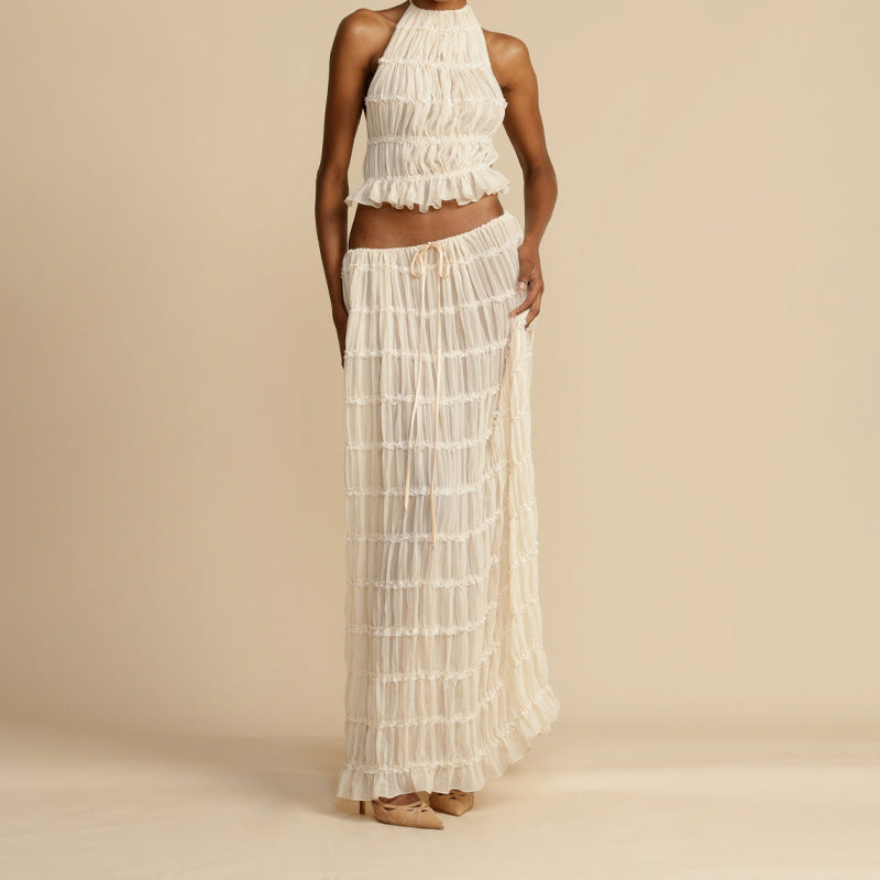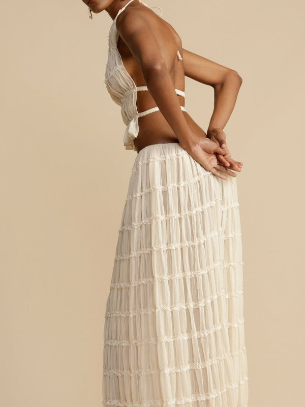 Design Folding Top Sexy Back Hanging Neck Sling Skirt Two Sets HZ0628