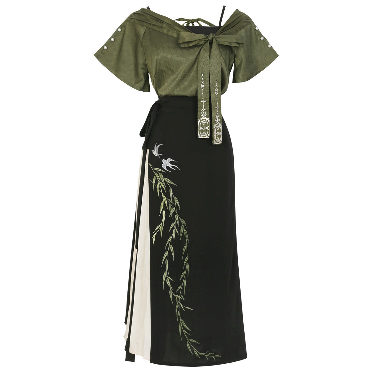 Design Liulu Green Chinese Style Improvement Han Elements Han Suit Women's Coat Sling Half Skirt Set 8705