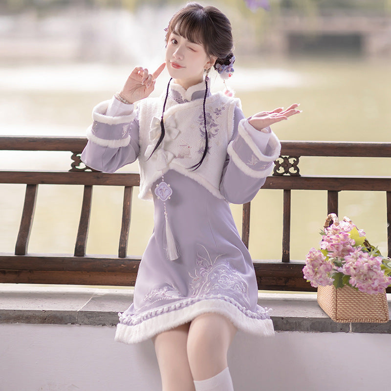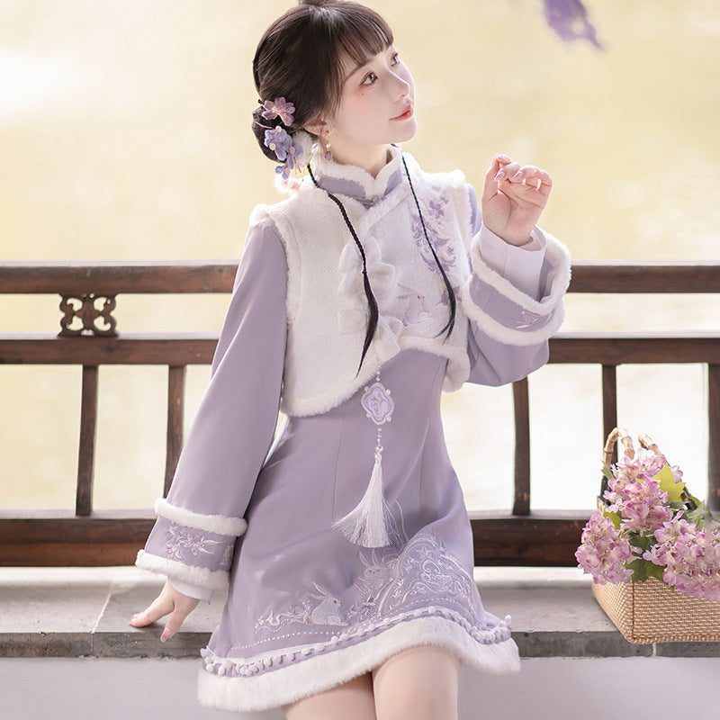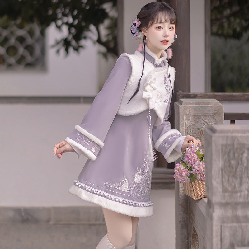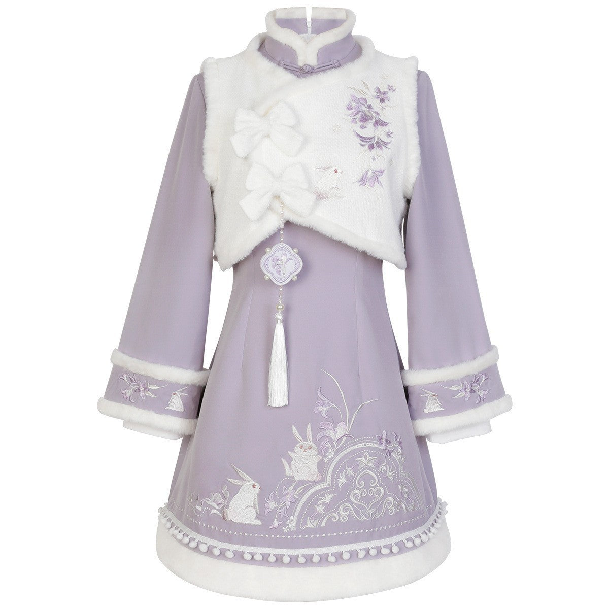 Design New Purple Cloud Rabbit Han Dress Women's Clothing Mane Dress Suit Autumn And Winter 8567