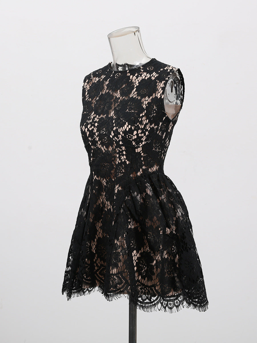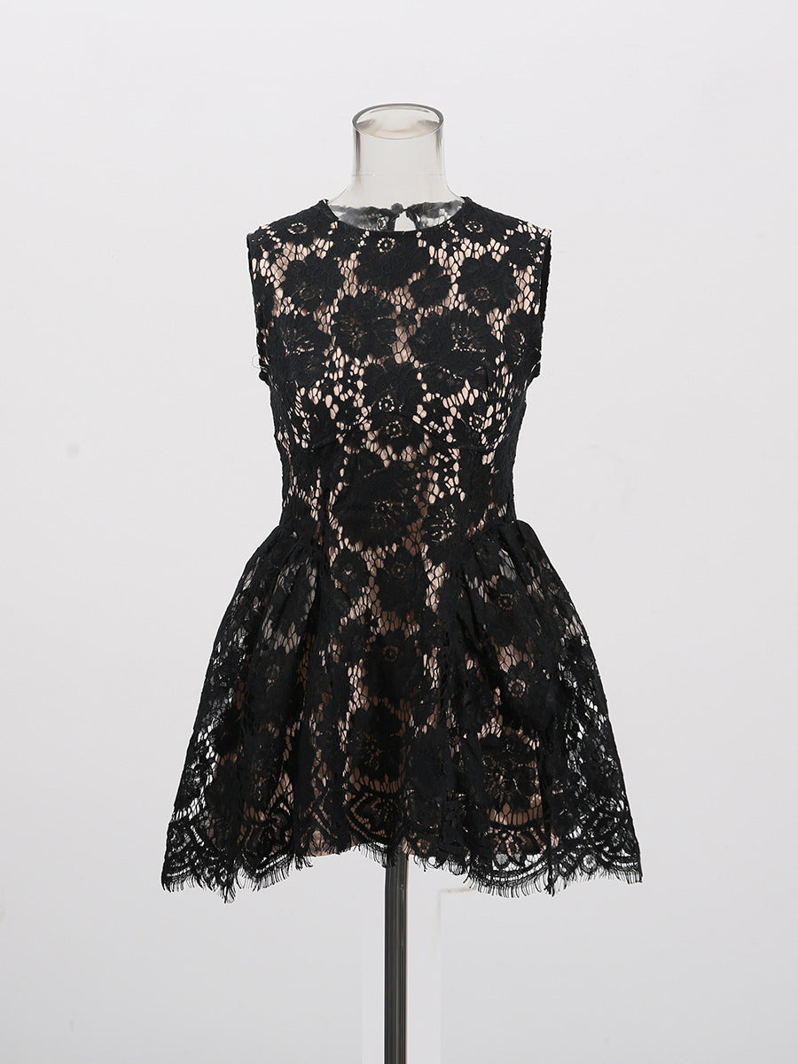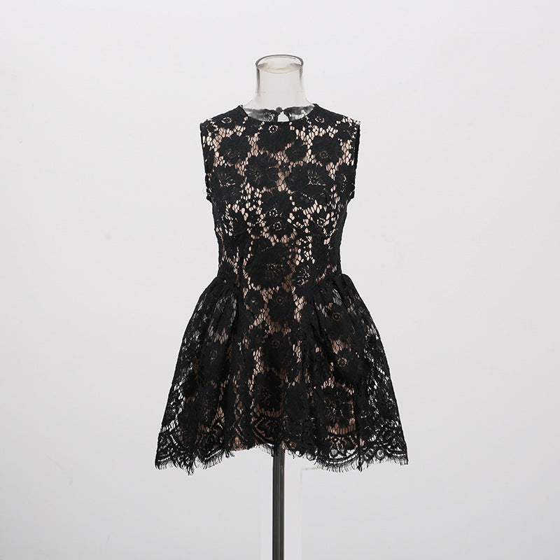 Dew Flower Mist Sleeveless Skirt Floral Lace Dress 2025 New Female Summer Collar Crooge Ponpong Skirt Dress Dress
