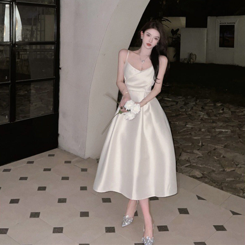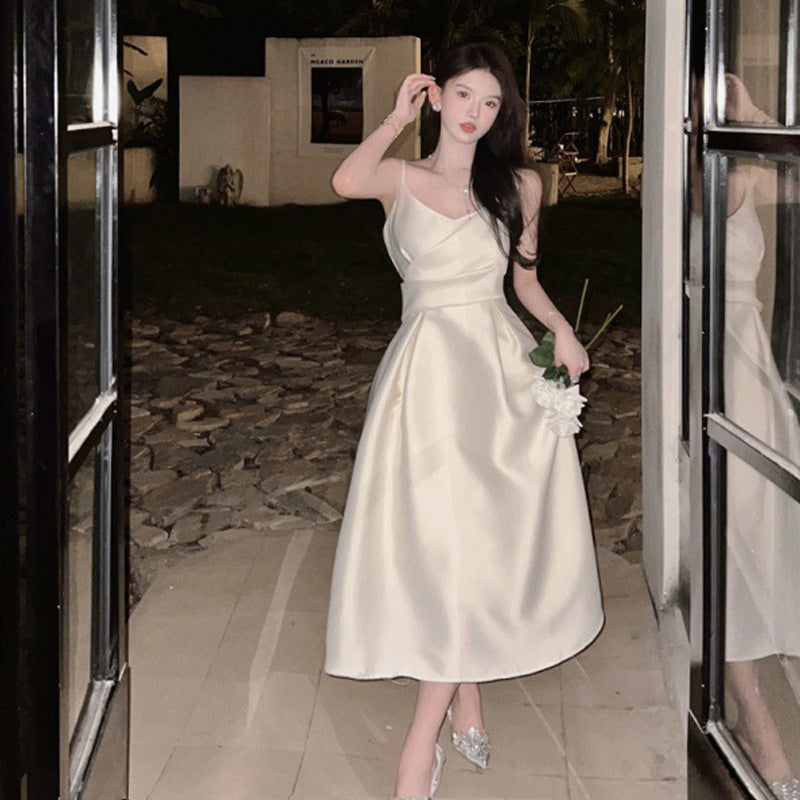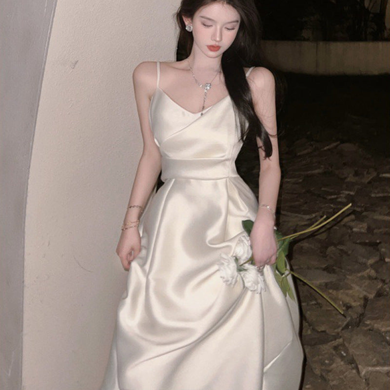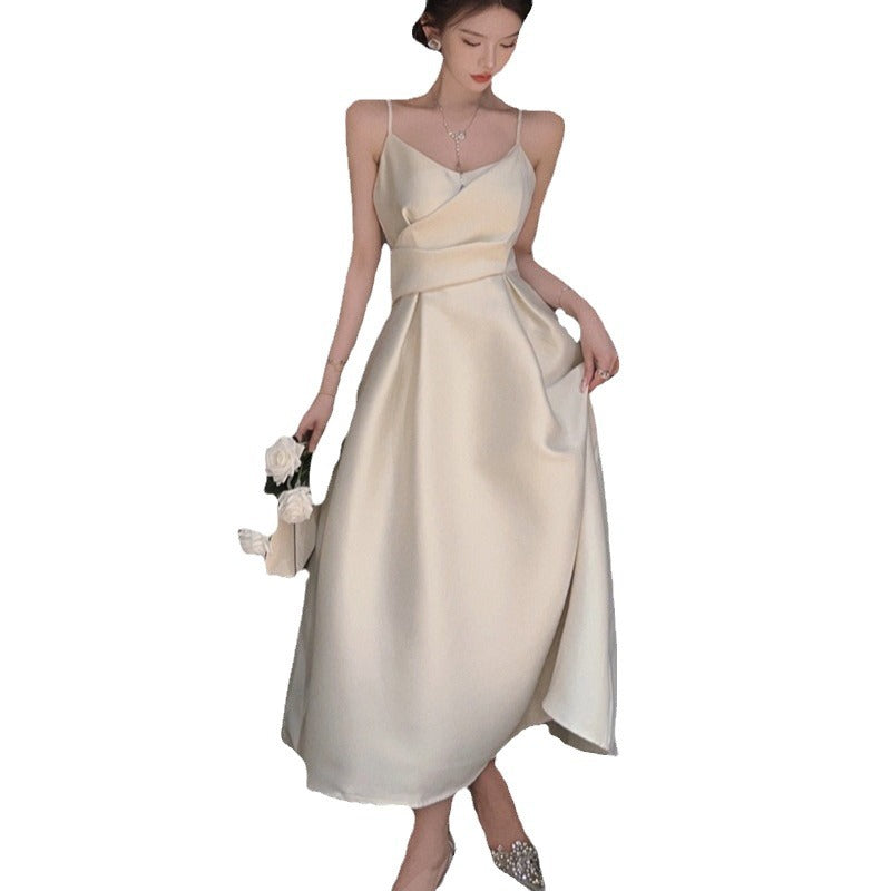 Dress 2025 Women's Summer Dress Sleeveless Waist Repair Niche Design Long Dress Banquet Temperament Dress Dress