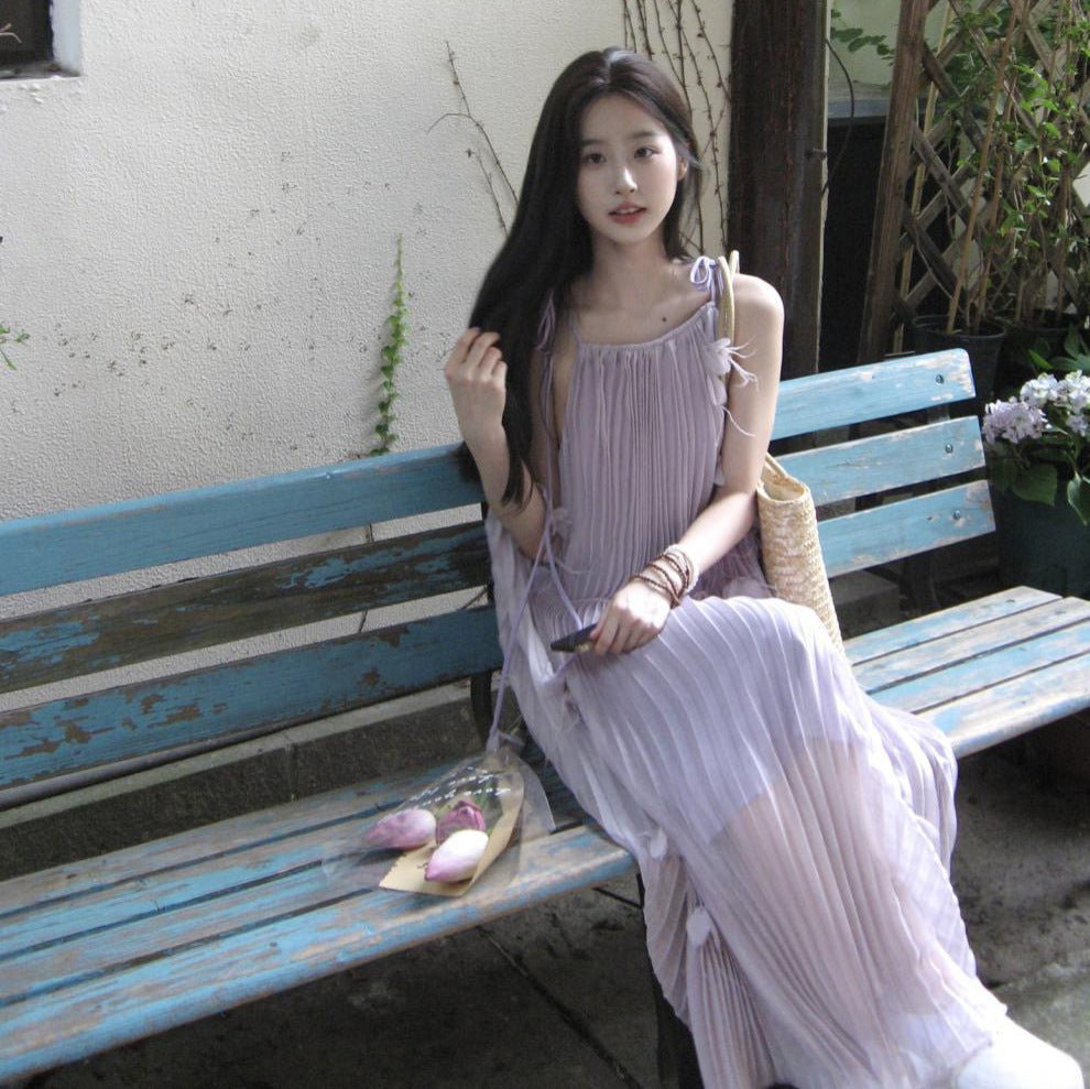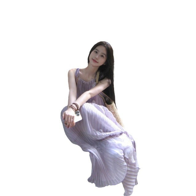 Dress Women's New Summer Beach Resort Style Loose Design Slings Long Skirt
