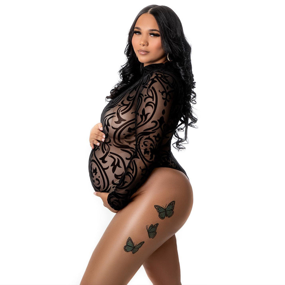 Ebay Hollow Mesh Pregnant Women's Jumpsuit Long-Sleeved Pregnant Women Take Pictures Of Mesh Yarn Jumpsuits Maternity