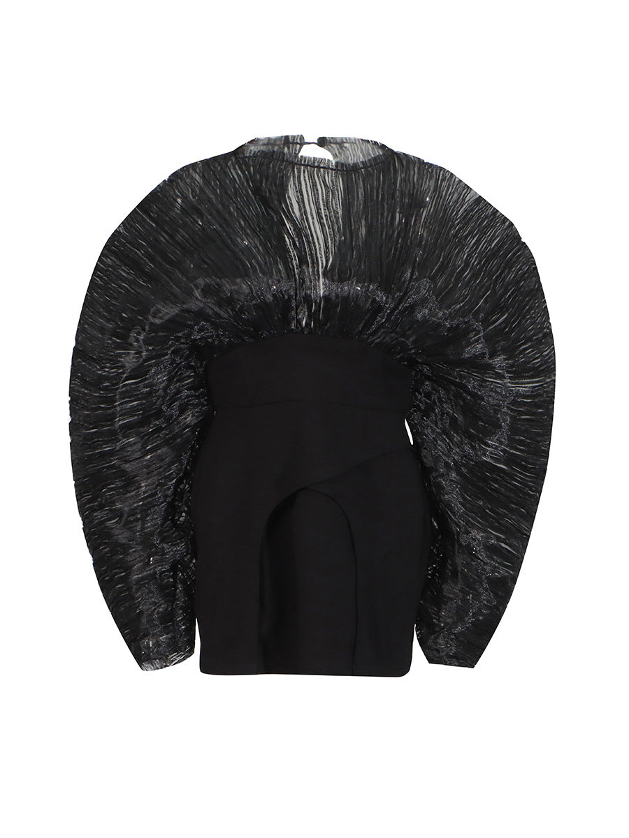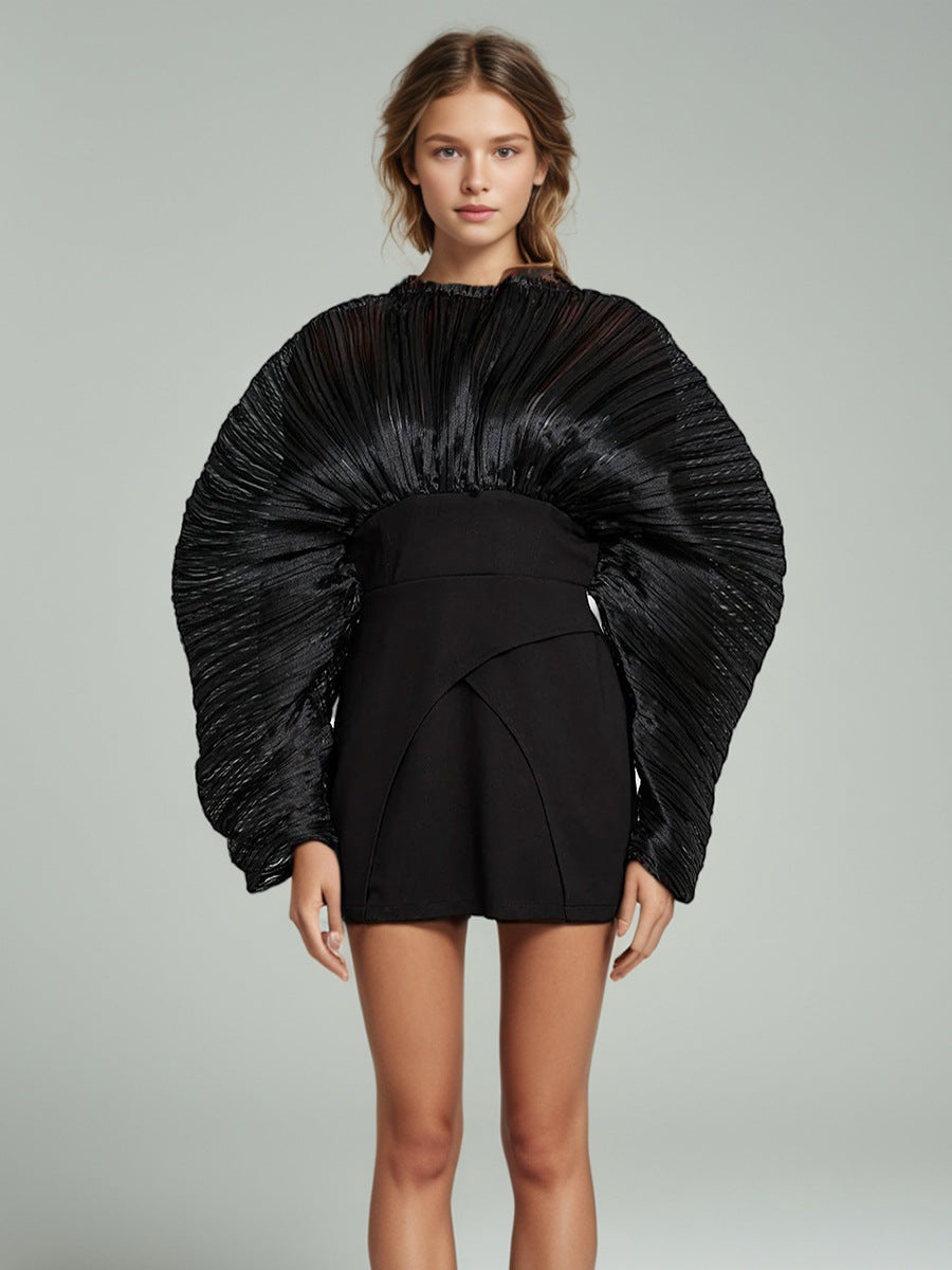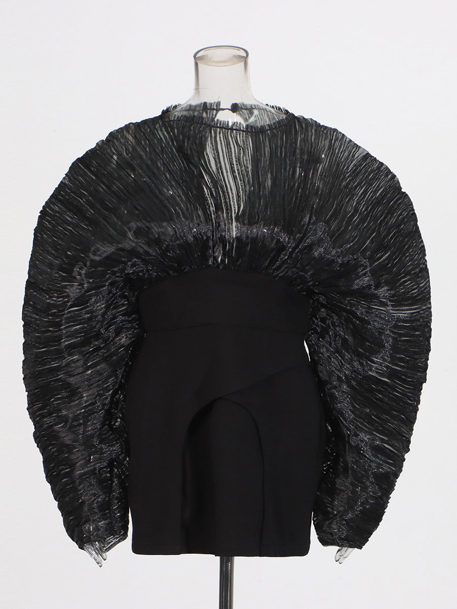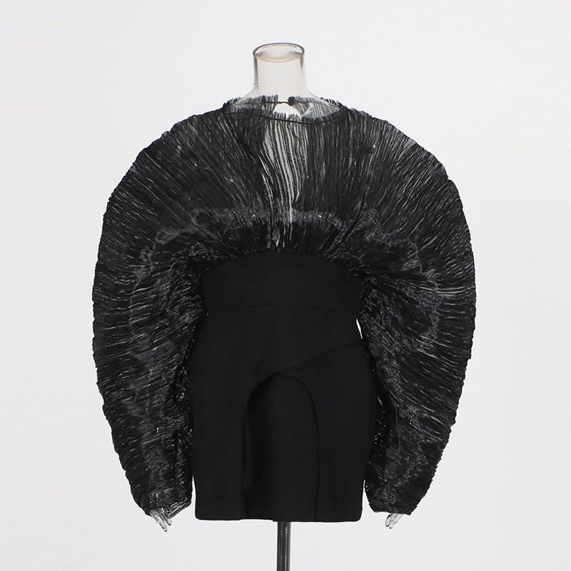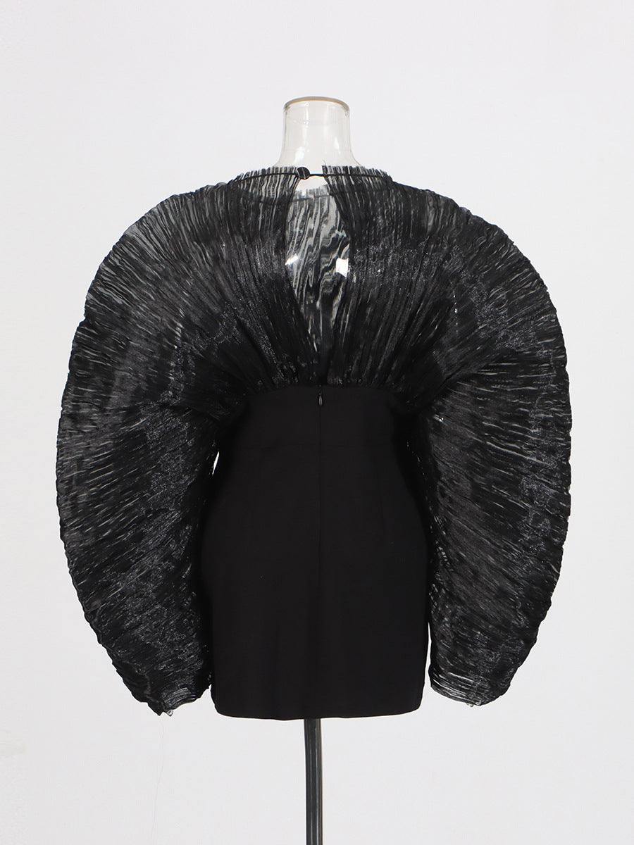 Egan Yarn Folded Skirt 2025 Spring New Round Collar Bubble Sleeve Splicing Sexy Bag Hip Dress
