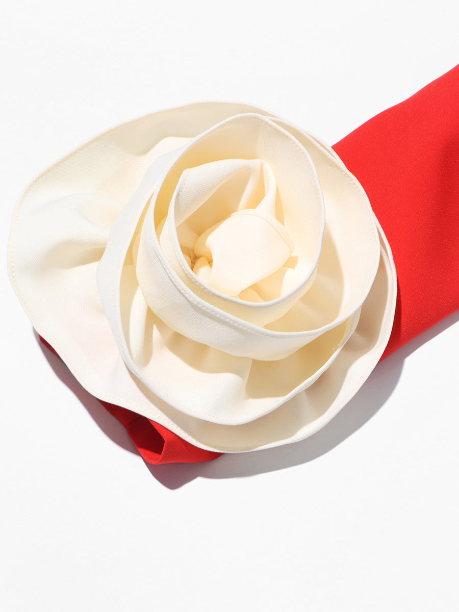 Elegant Famous Wind 2025 Round Collar Summer New Three-Dimensional Rose Design Niche Temperament Dress