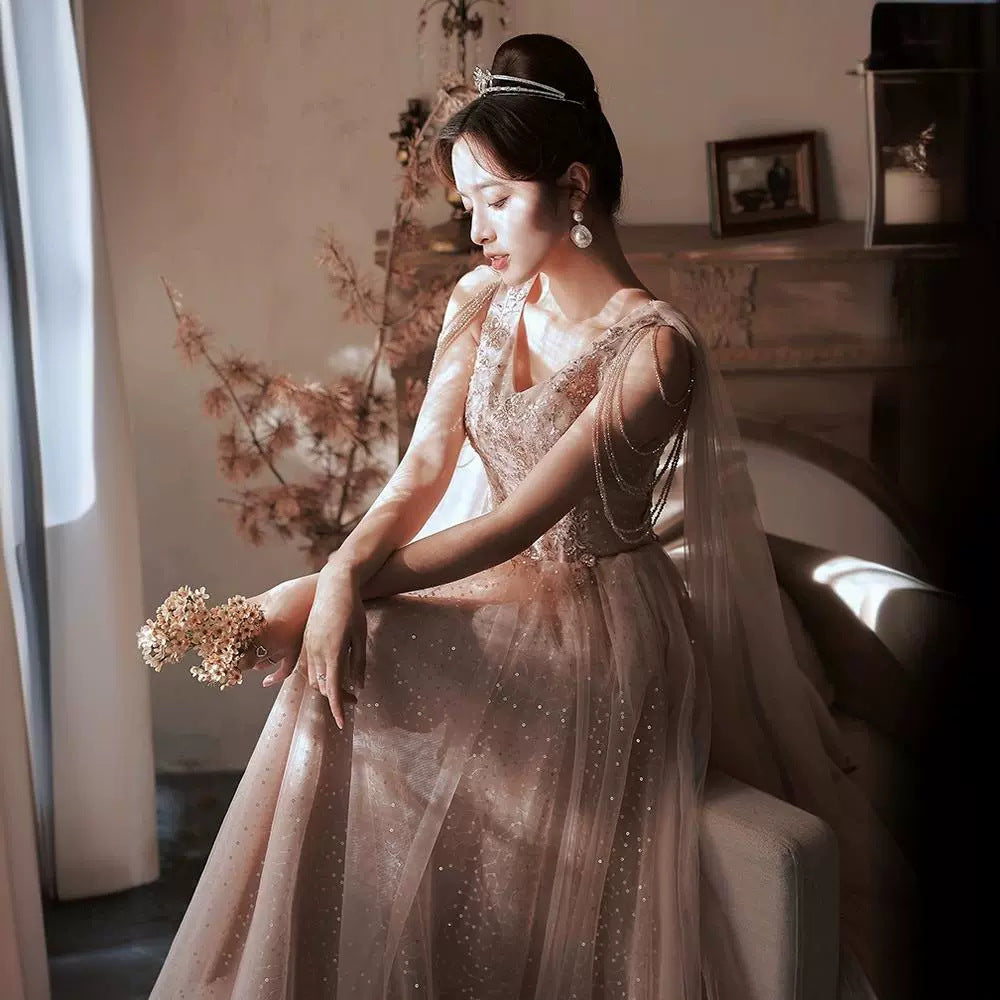 Examination Evening Dress Female Banquet Temperament Light Luxury Small High-End Atmospheric Host Tuxing Performance Dress High Sense