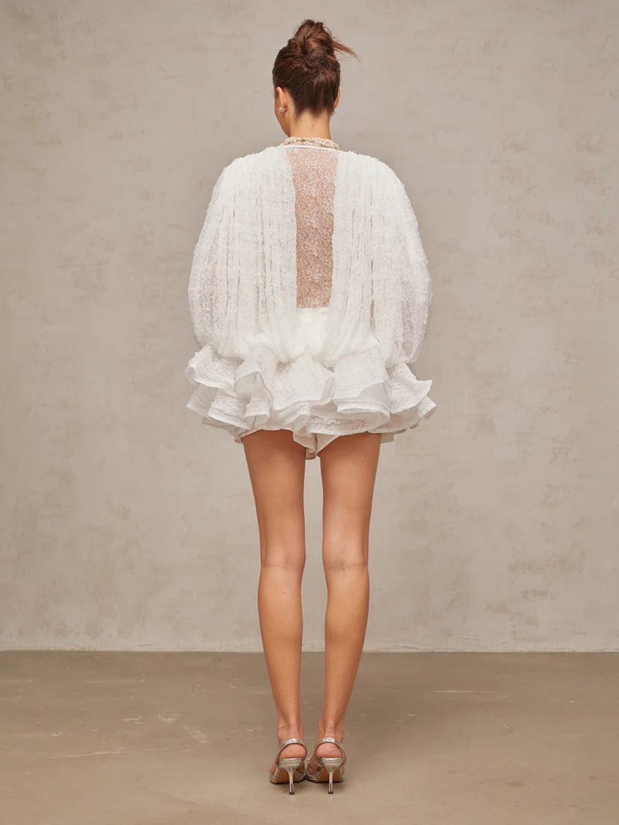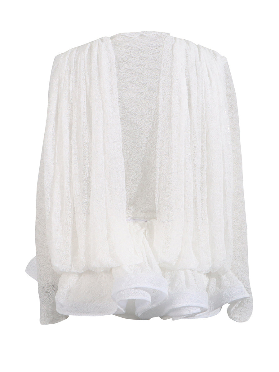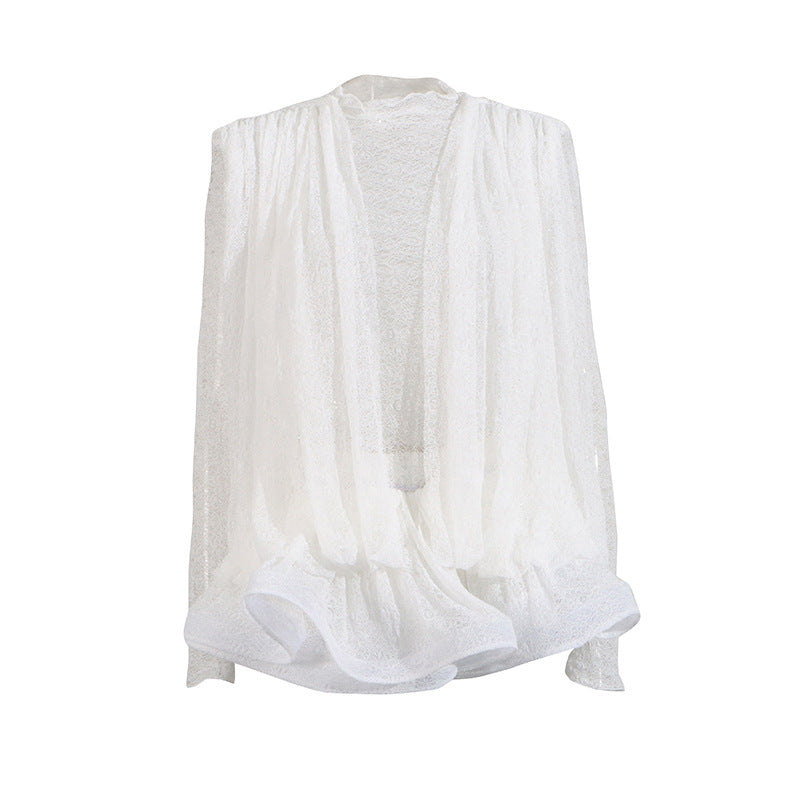 Famous Party Dress 2025 Summer New Deep V-Neck Long-Sleeved Lotus Leaf Side Solid Color Lace Dress