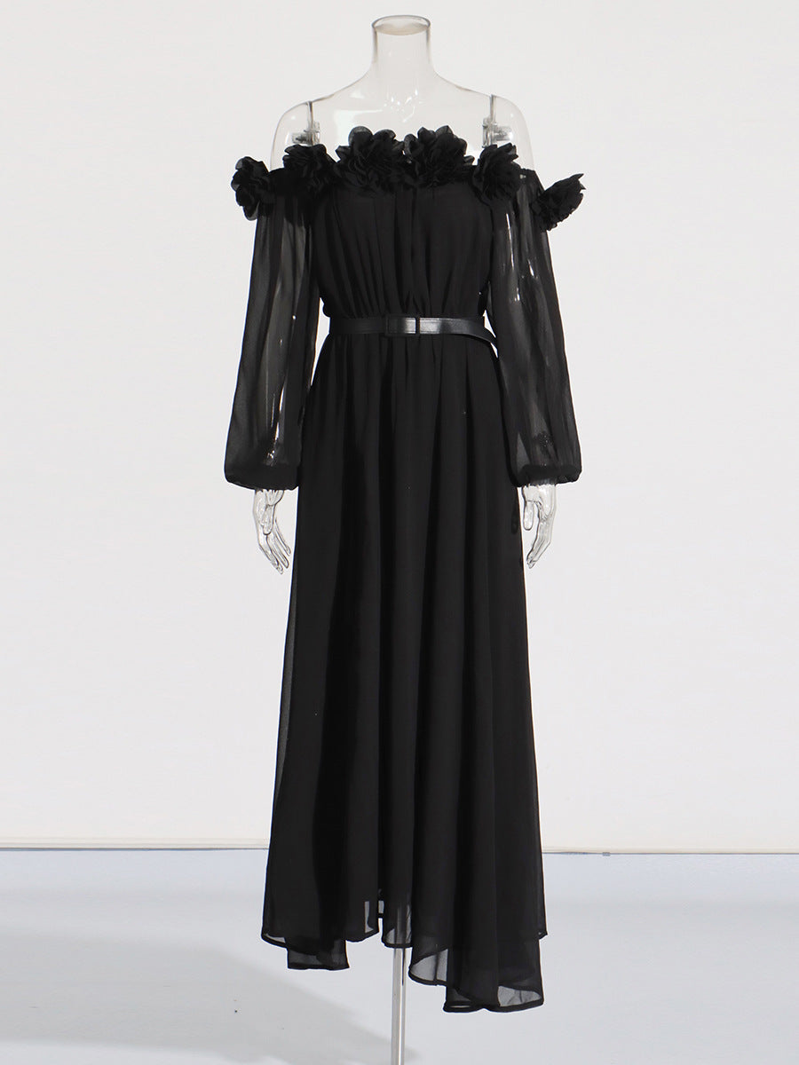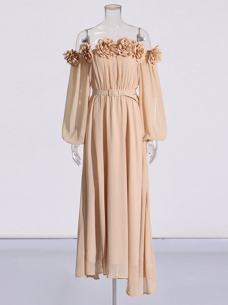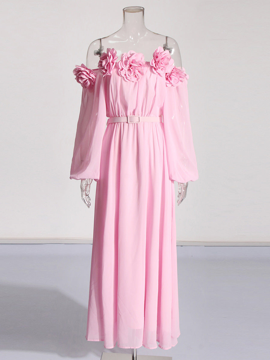 Famous Party Dress 2025 Summer New Three-Dimensional Flowers To Receive Waist Dress Woman