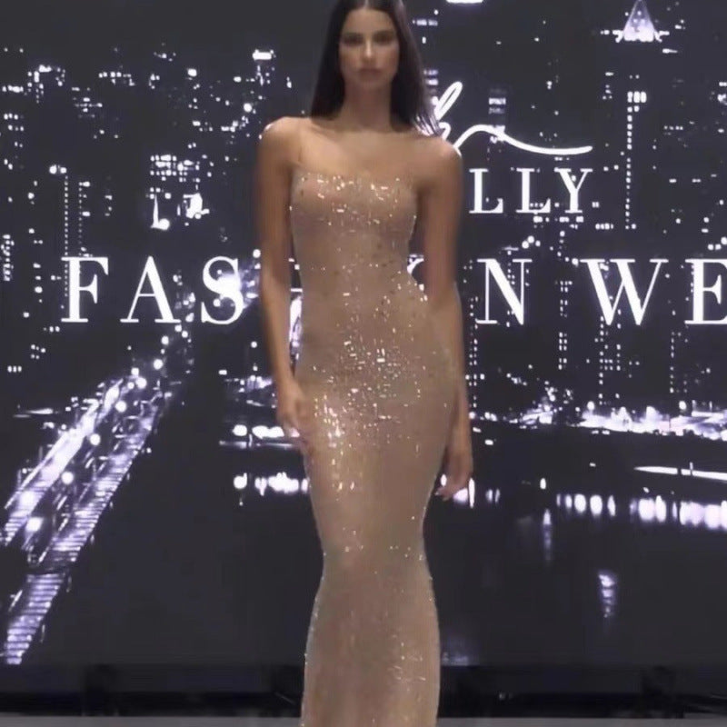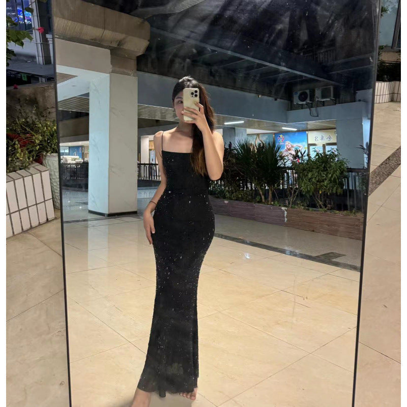 Feeling Nude Shiny Piece Hanging Dress High-End Light Luxury Niche Banquet Birthday Sexy Dress Dress Dress