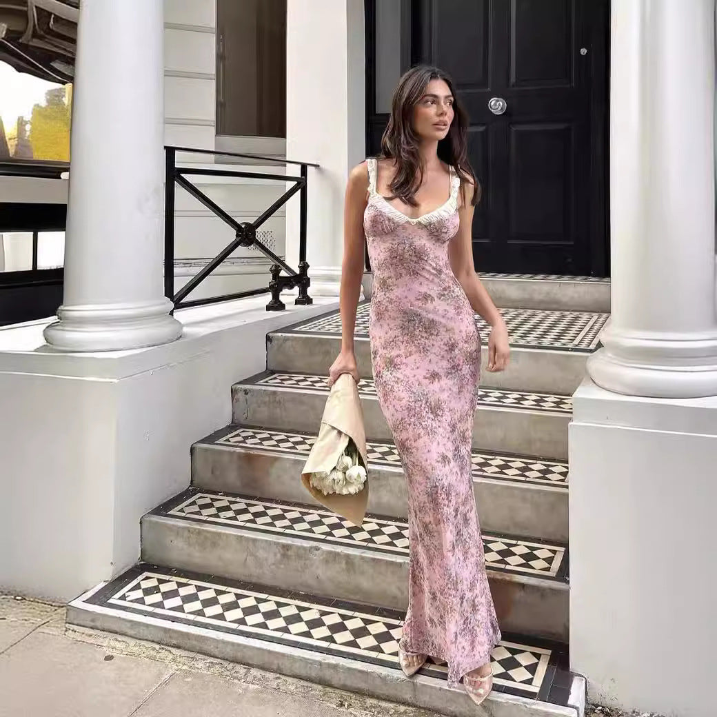Fragmented V-Neck Folded Slings Slim Dress Woman 2024 Early Spring New Seaside Holiday Dress