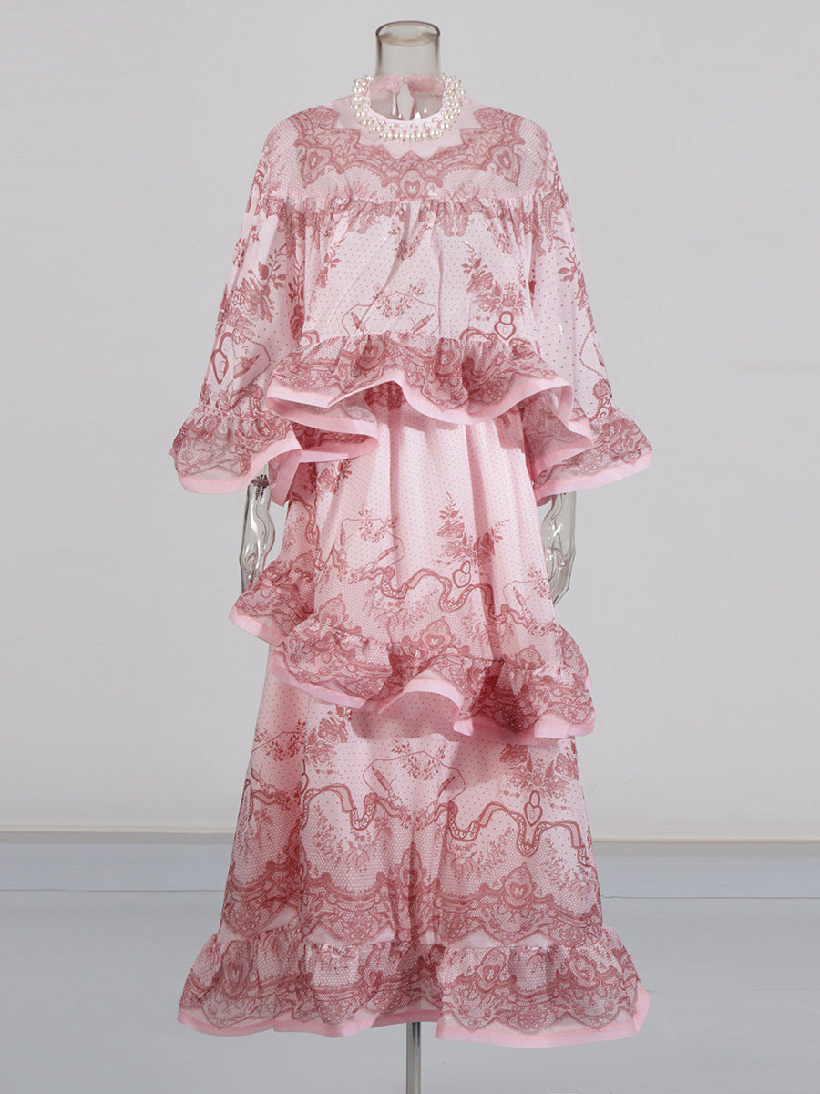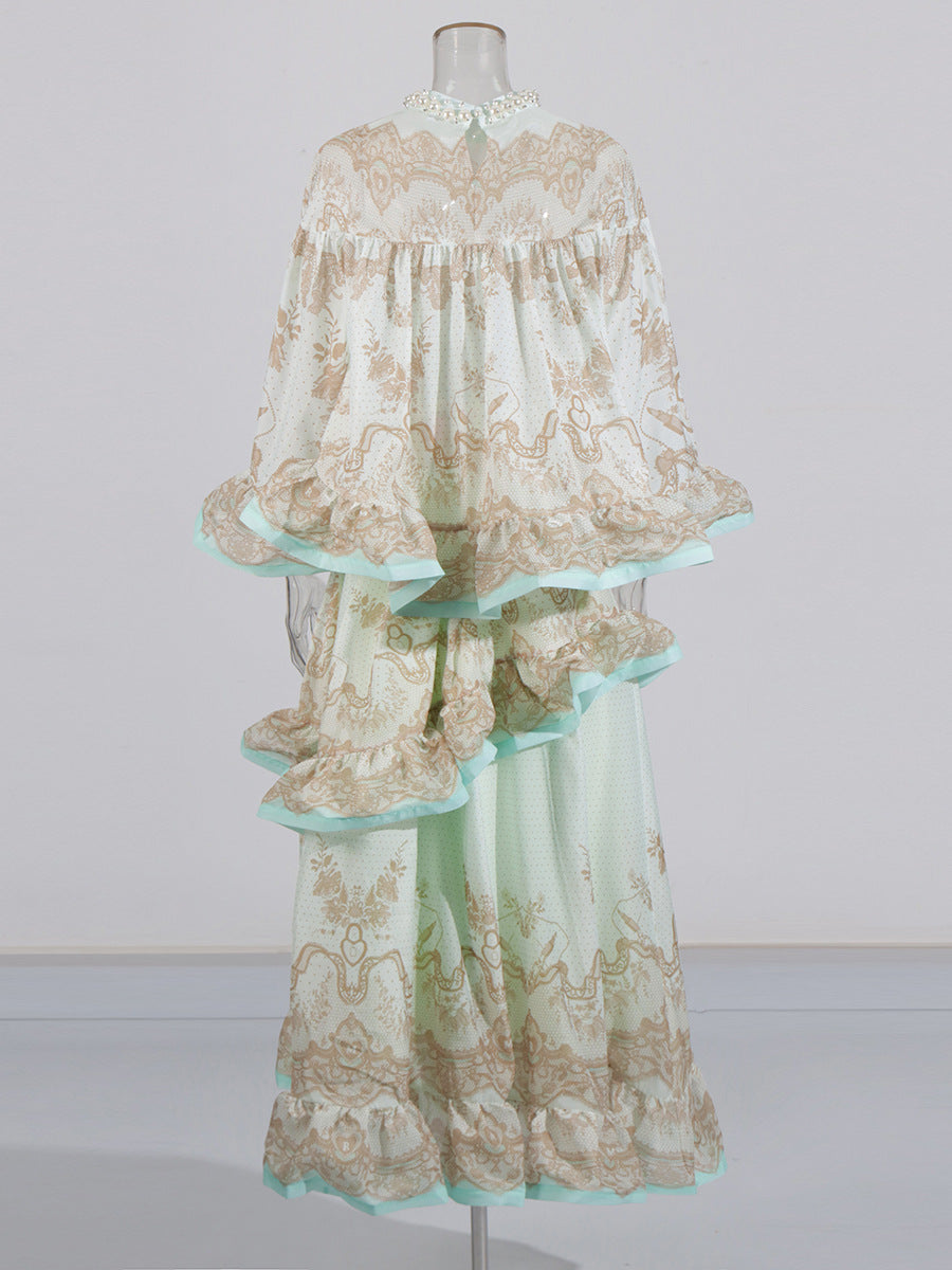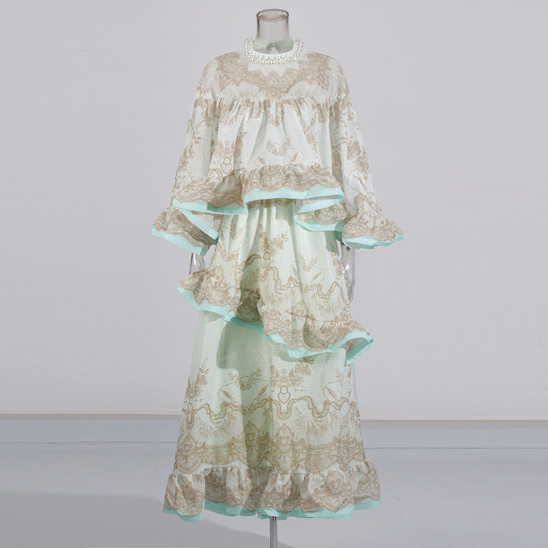 French High-End Heavy Industry Lotus Leaf Design 2025 Summer New Shirt Skirt Print Set Woman