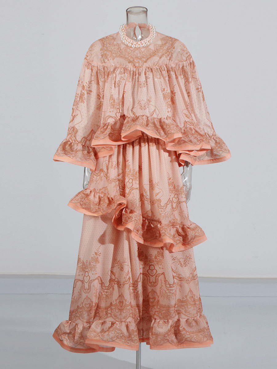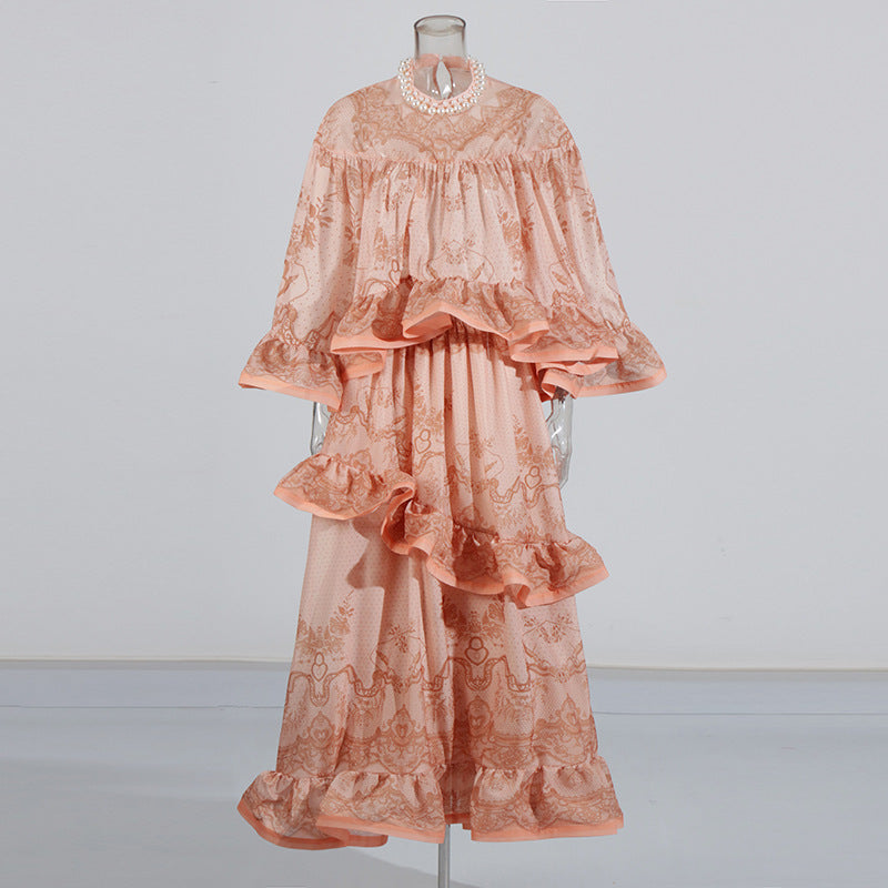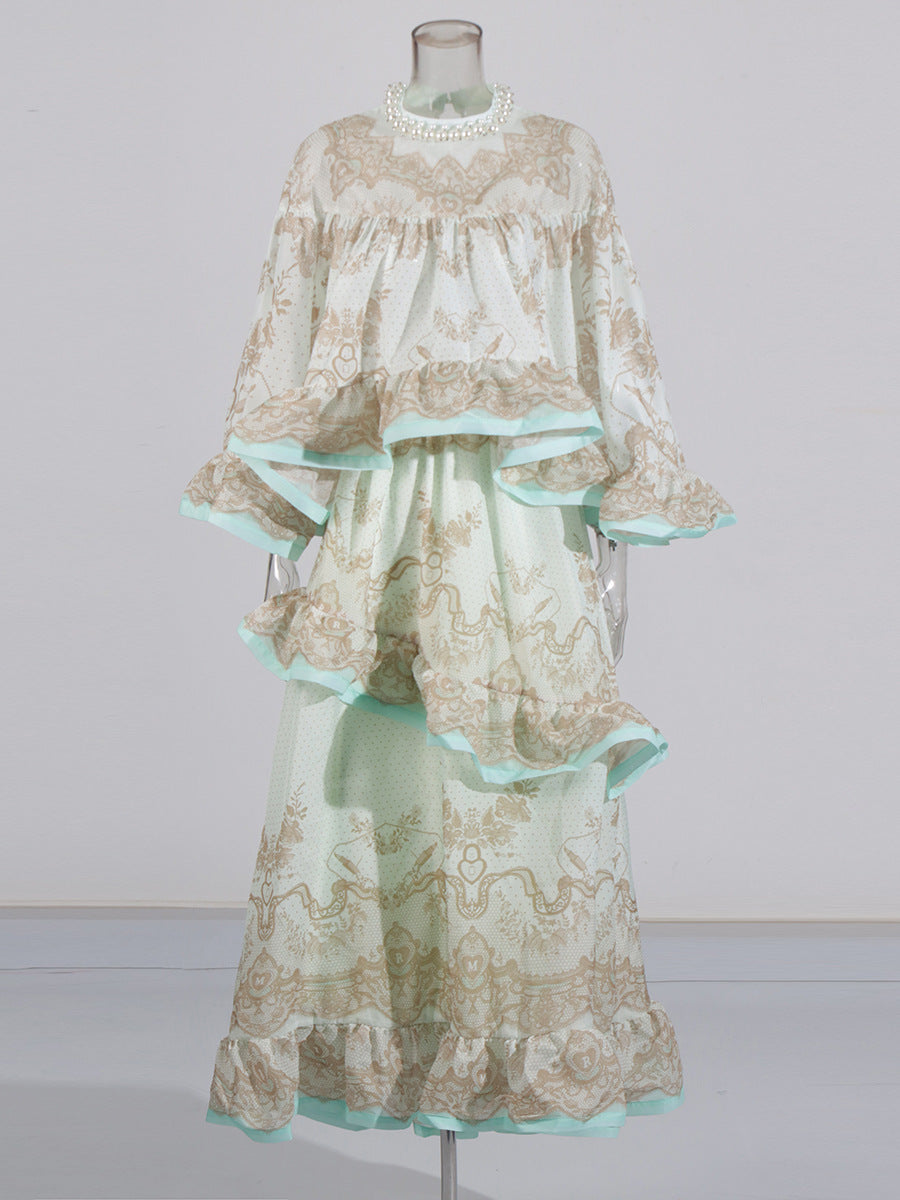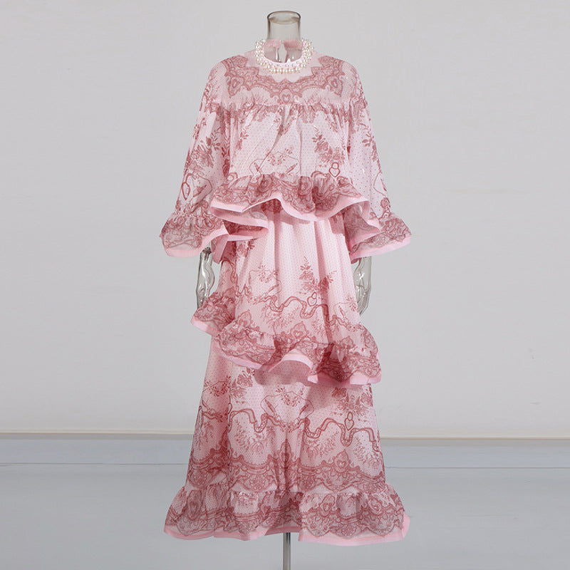 French High-End Heavy Industry Lotus Leaf Design 2025 Summer New Shirt Skirt Print Set Woman