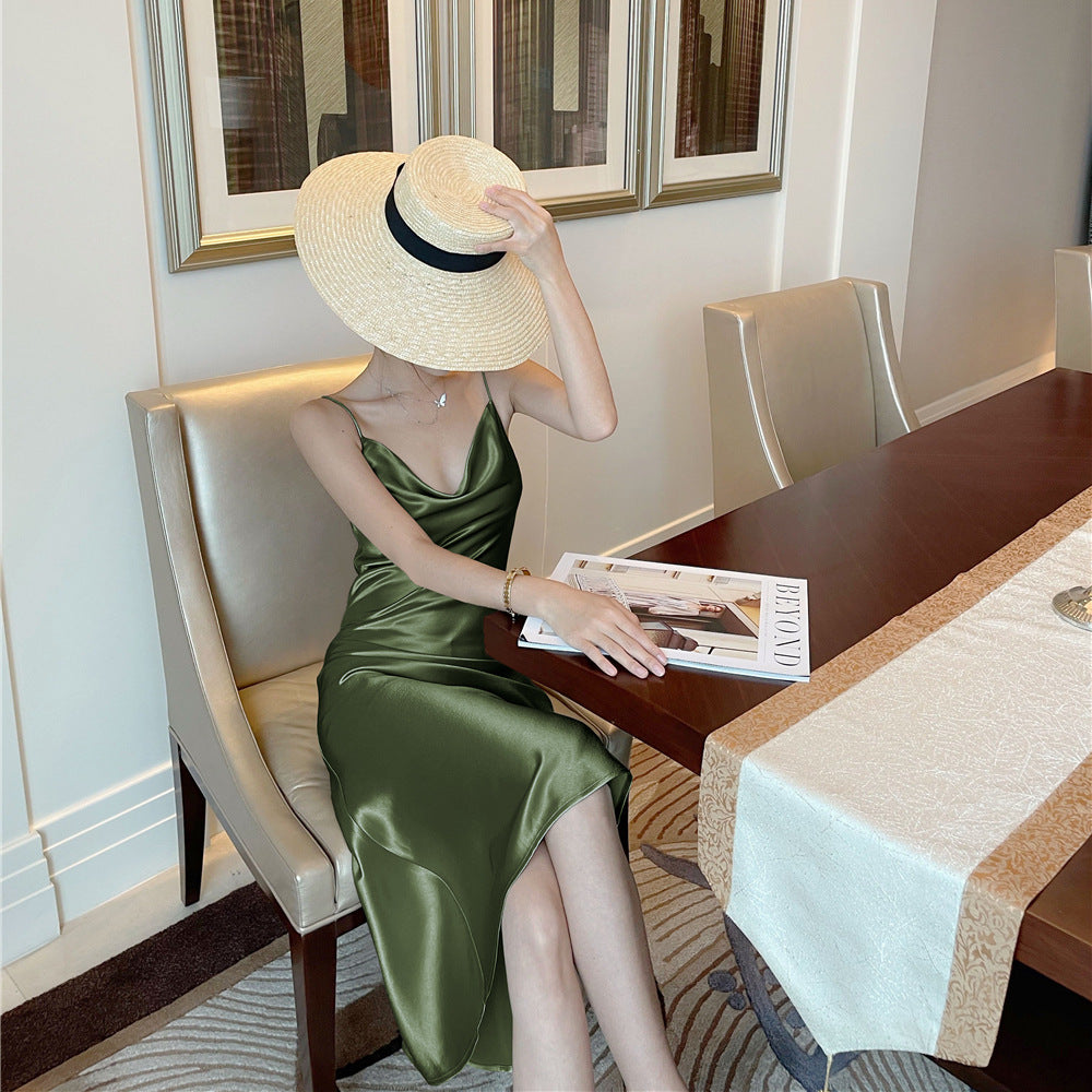 French Long Acetic Acid Vertein Collar Design Small Sexy Sling Dress Suit Inside The Long Skirt